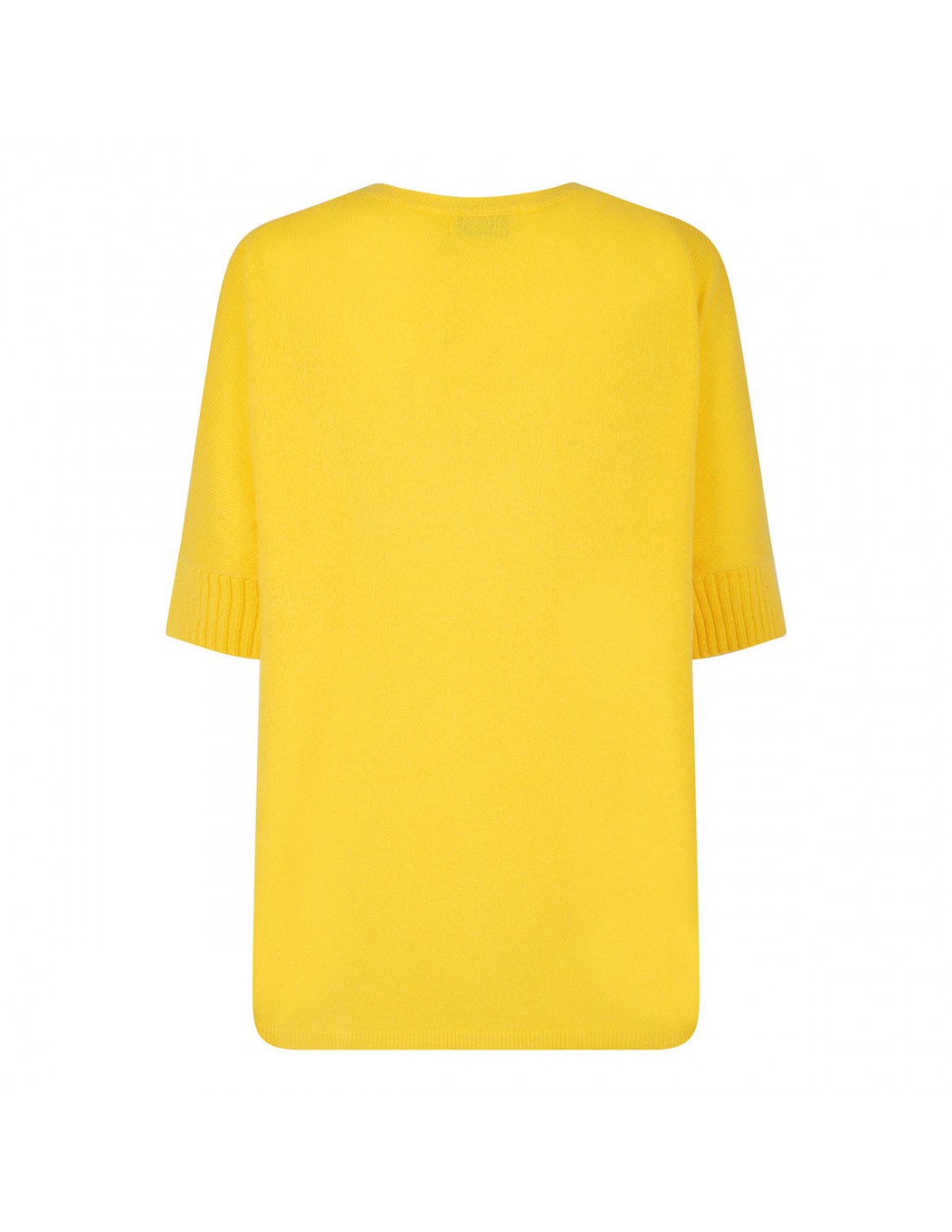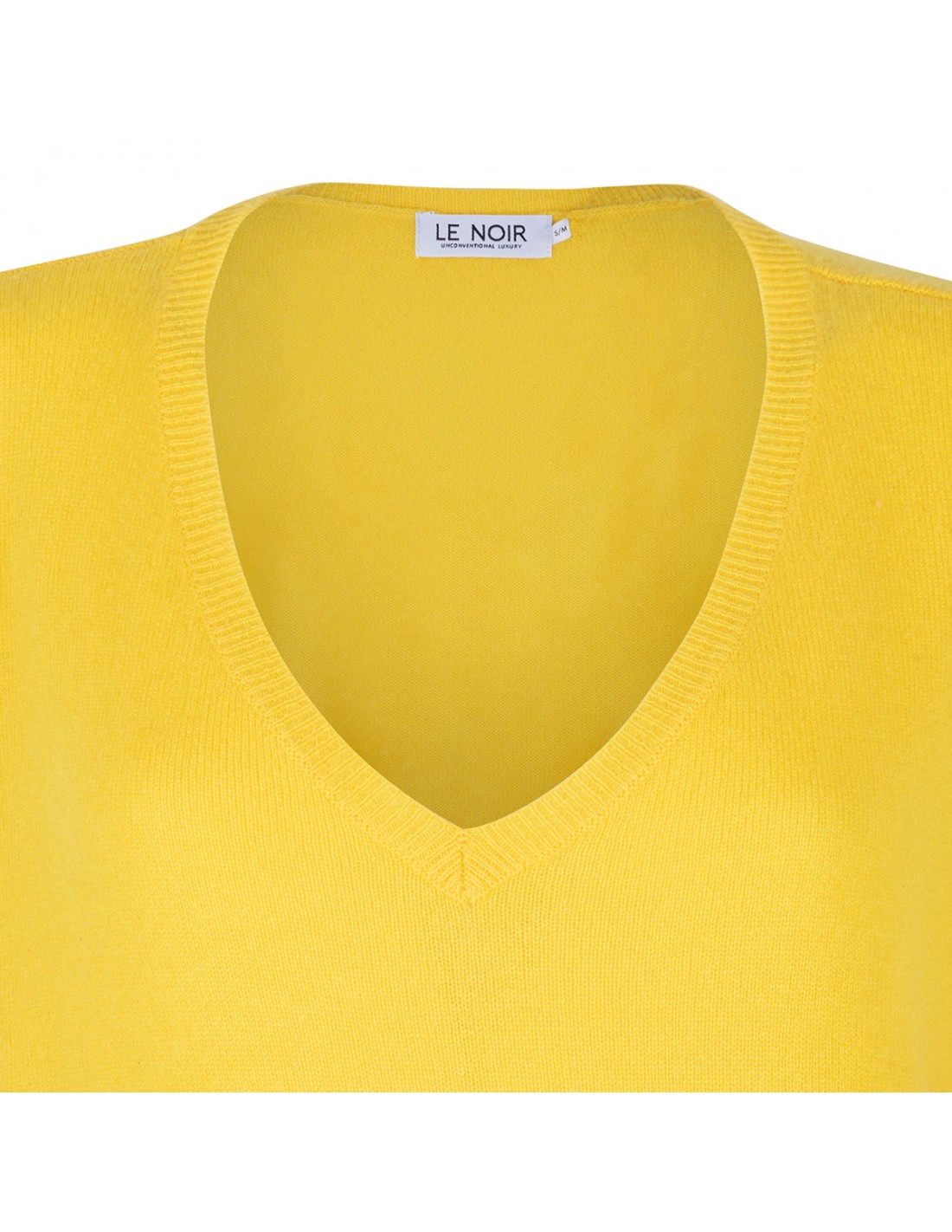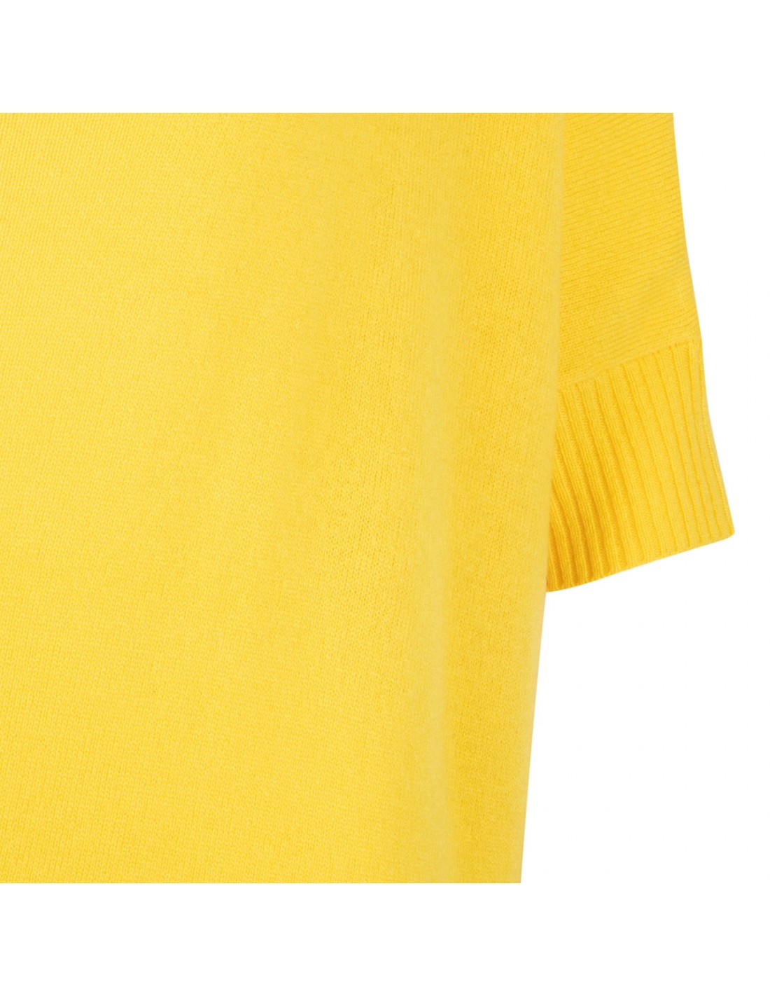 Yellow cashmere Aimee top from Le Noir featuring V-neck, half-length sleeves, ribbed knit edges.