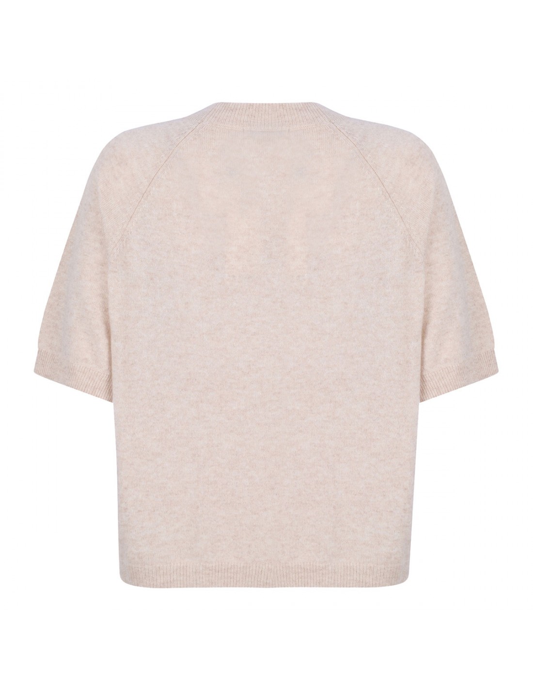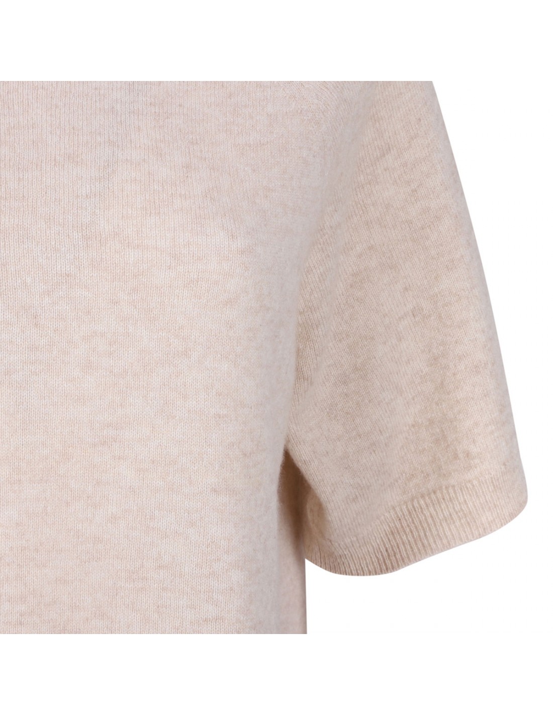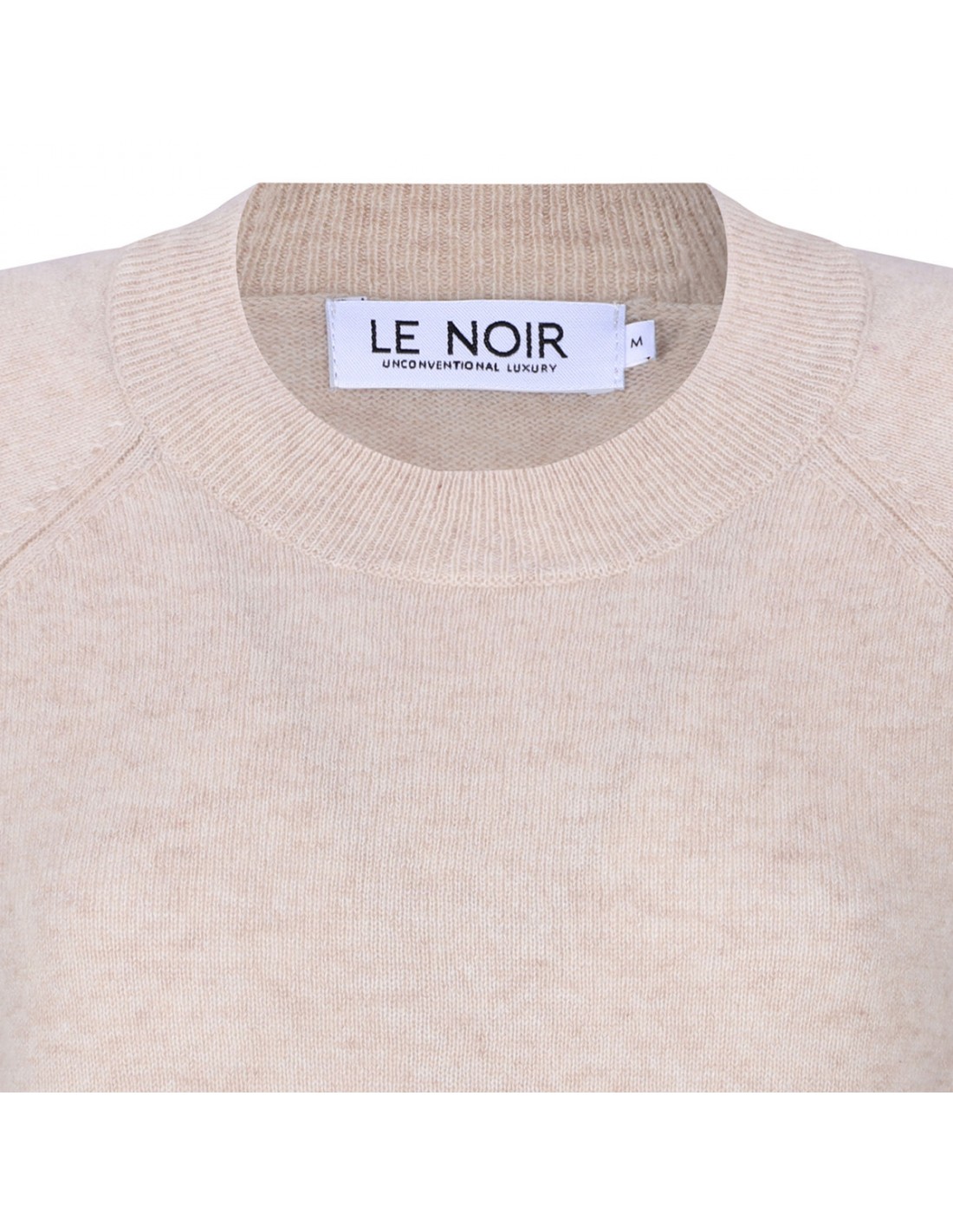 Beige cashmere Loona top from Le Noir featuring crew collar, short raglan sleeves, ribbed knit edges.?