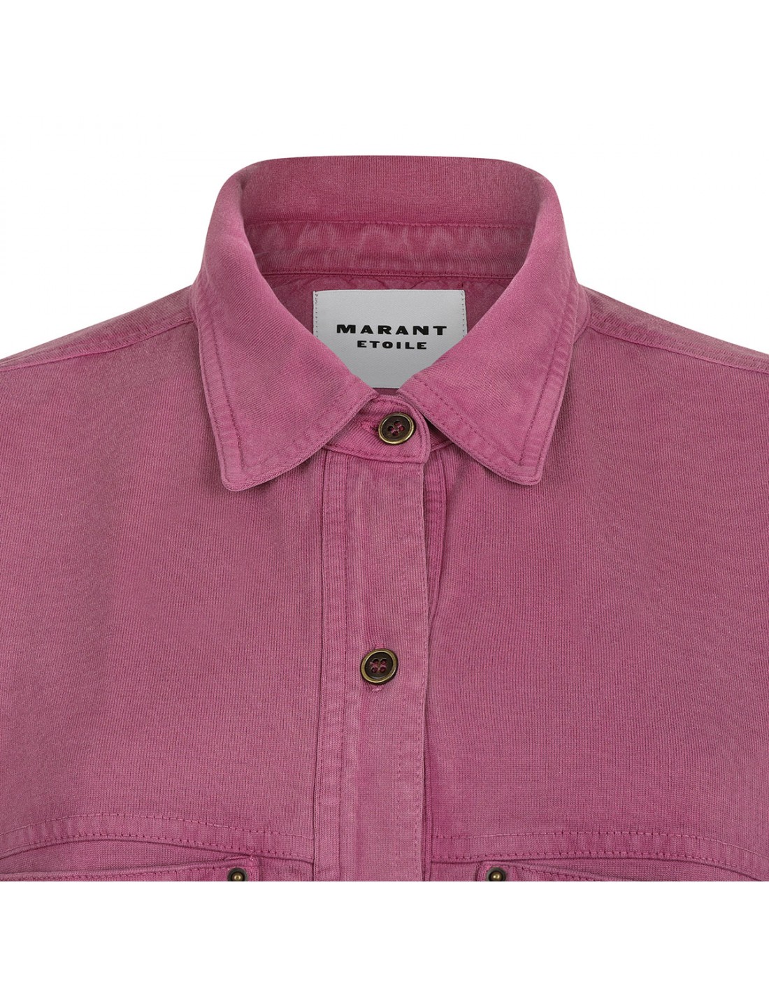 Pink faded cotton jersey Raquel shirt from Marant Etoile featuring pointed collar, tone-on-tone logo embroidered on the pocket, button fastening at front, long sleeves with buttoned cuffs, chest patch pockets, metal rivets, rounded hem.