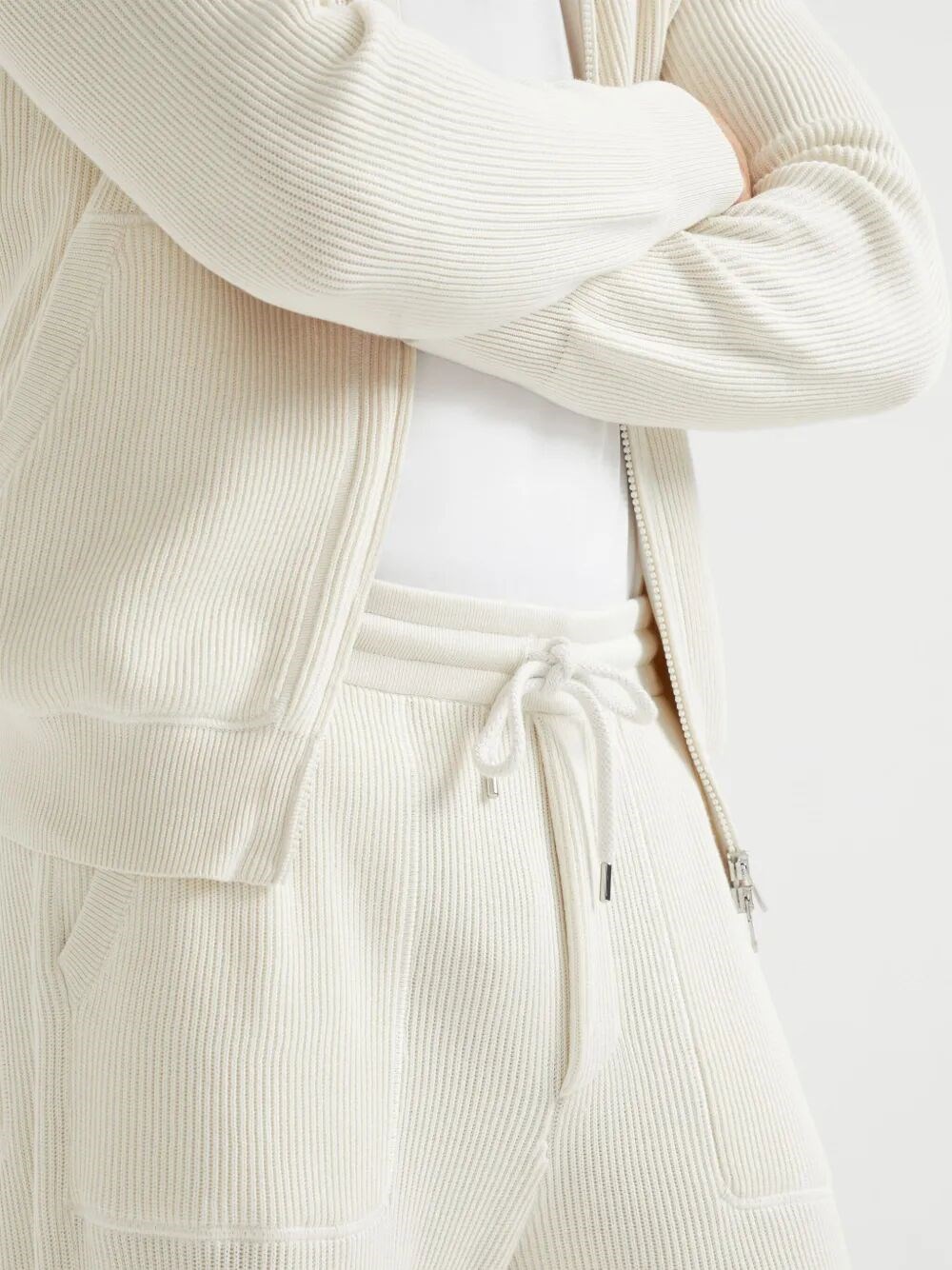 코튼 English 리브 니트 팬츠 위드 지퍼 Cuffs