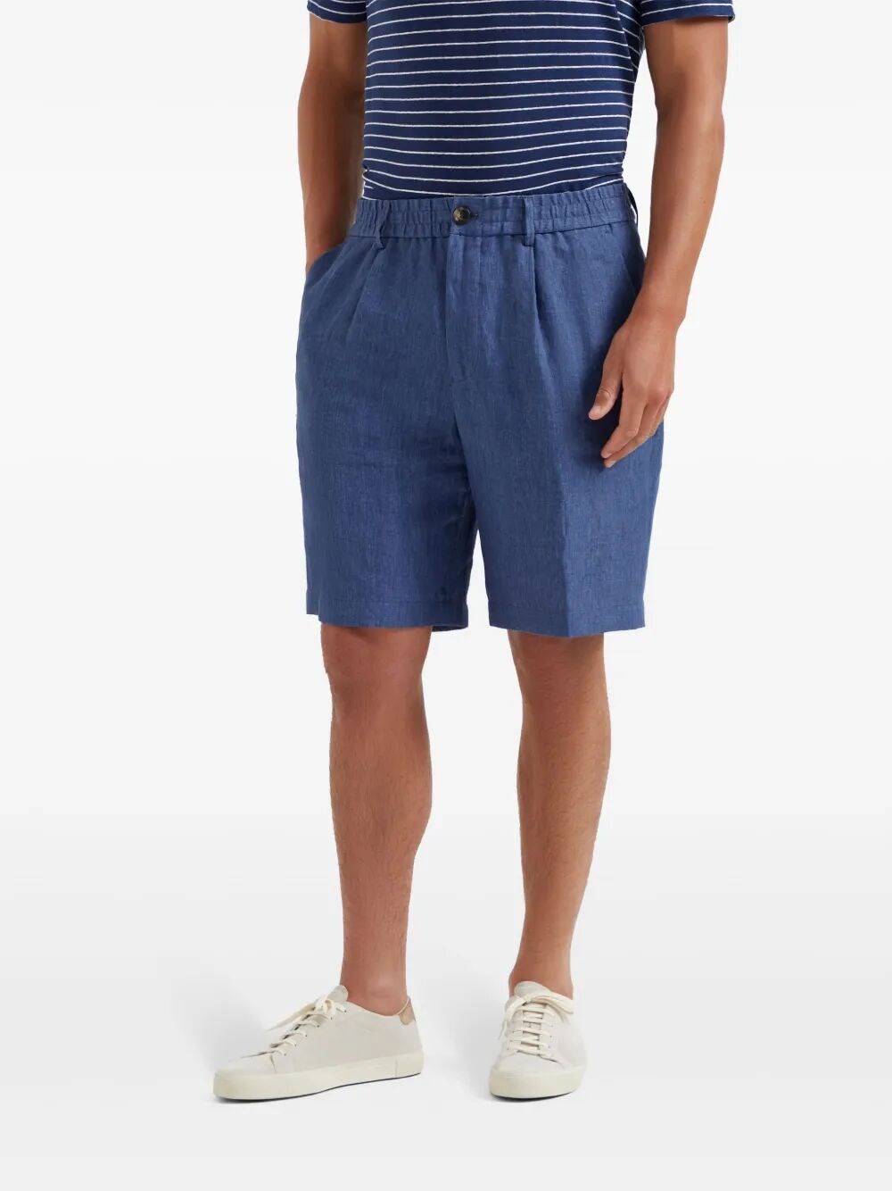 > 경량 Délavé 린넨 버뮤다 쇼츠 위드 Elasticated Waistband