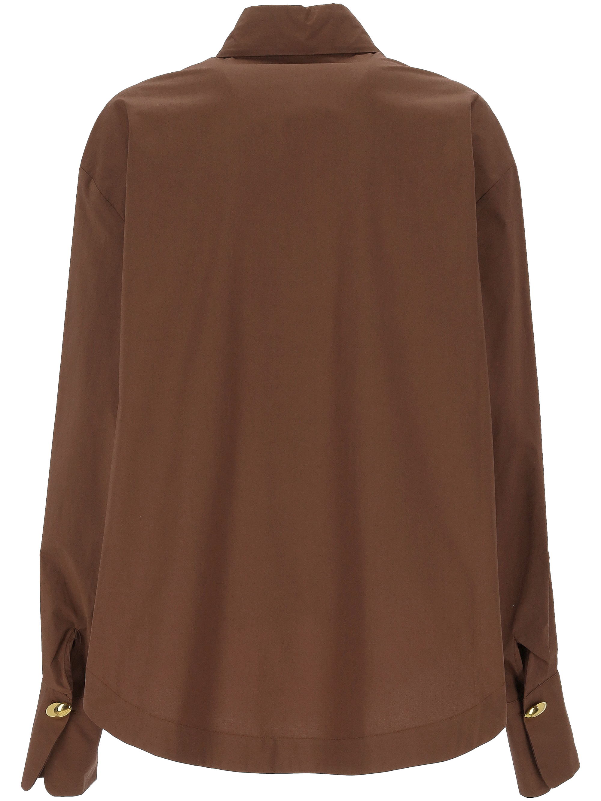 Coffee brown concealed front button fastening classic collar long sleeves buttoned cuffs