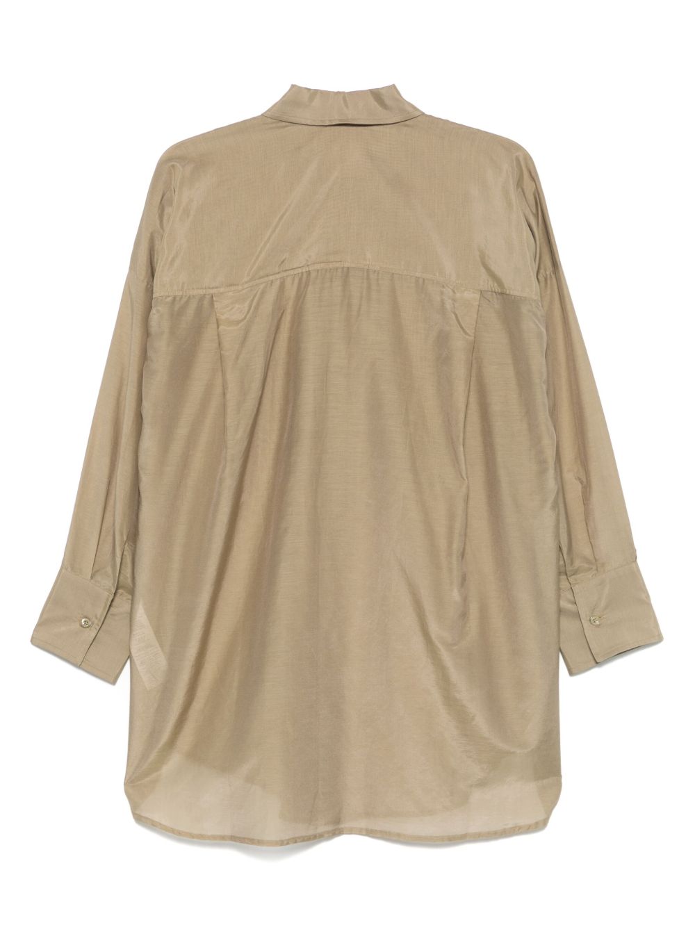 light beige front button placket buttoned cuffs two chest flap pockets pleat detailing