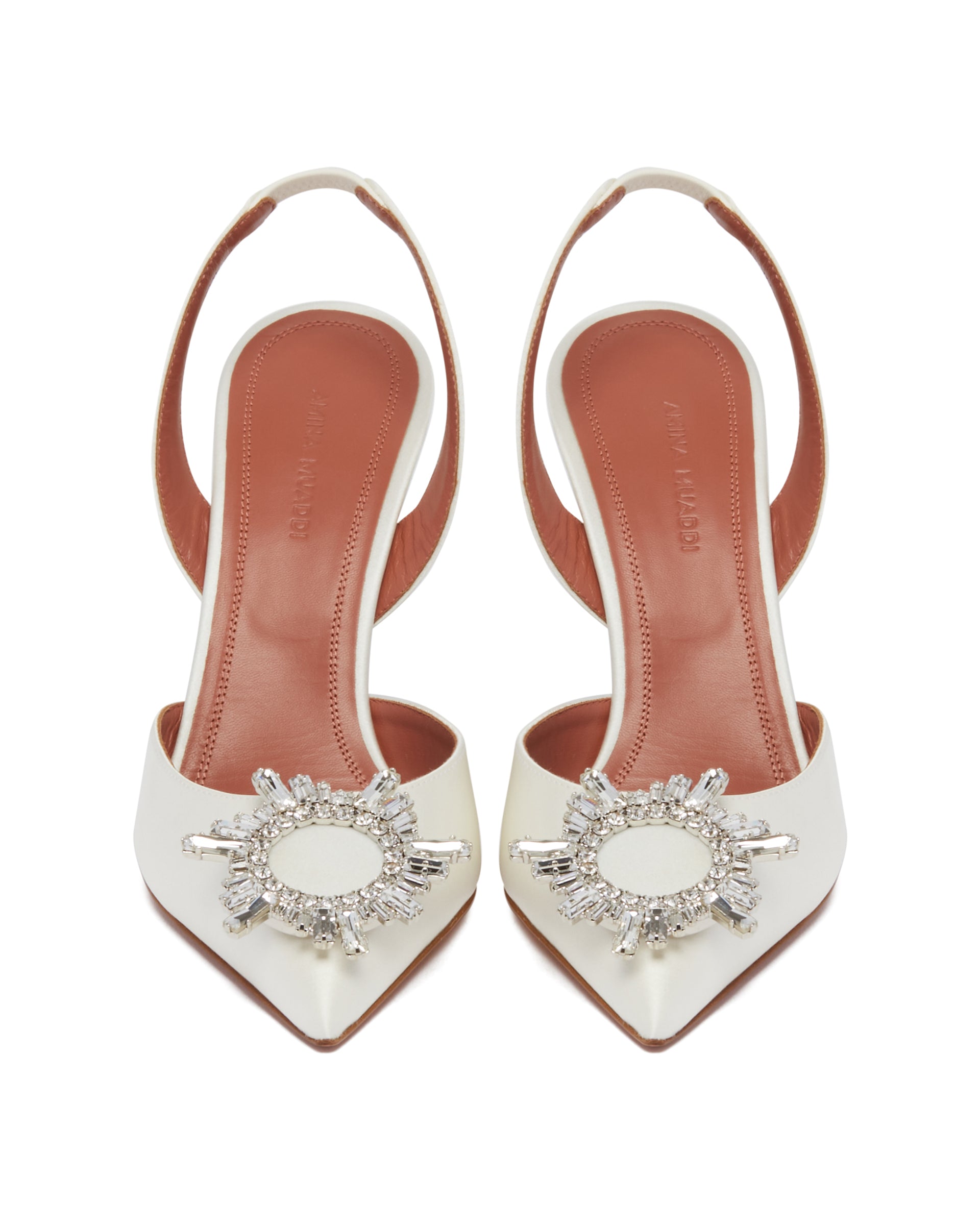 White Begum Sandals: buy the product by AMINA MUADDI from. Enter the site and find out more details.
