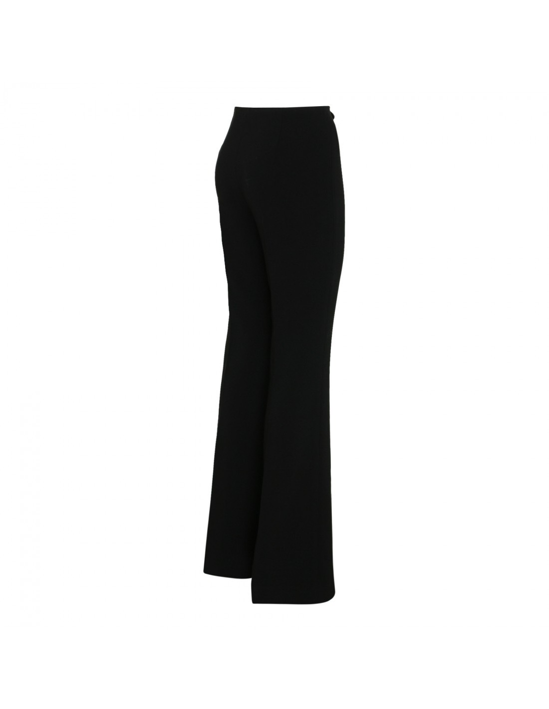 Black crepe Demetria pants from Theory featuring concealed zip fastening along side, fitted silhouette on the waist and hips, flared hem.