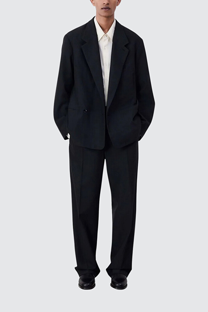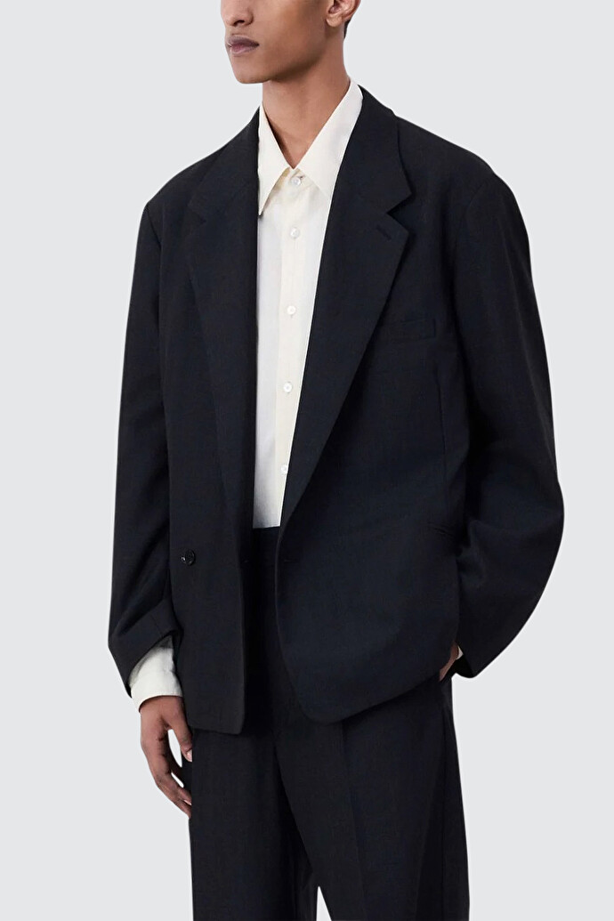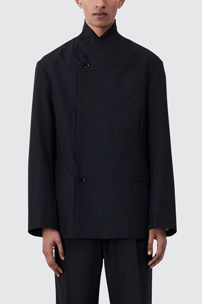 Lemaire double-breasted wool jacket with long sleeveschest pocket with flap, front closure with buttoning, crossed V-necklineDouble-breasted closure with buttons. Color: Caviar