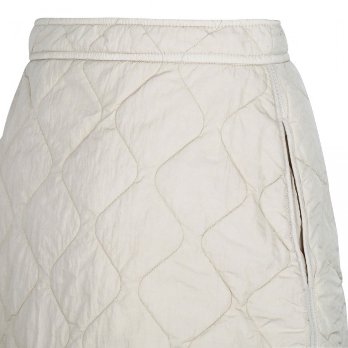 Soap hue quilted nylon mini skirt from Burberry featuring embroidered Equestrian Knight Design at the hem, press-stud fastening and side slip pockets.