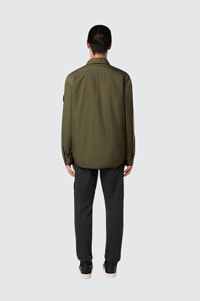 Stone Island shirt jacket made of black Crinkle Reps R-NY with PrimaLoft® - TC padding. Featuring a pointed collar, a two-way front zip fastening, long sleeves with buttoned cuffs, multiple pockets and a curved hem. The iconic logo badge completes the design Color: Muschio