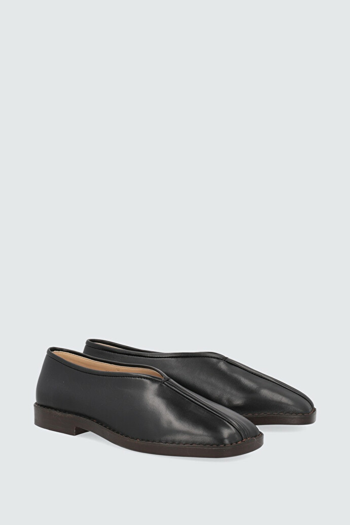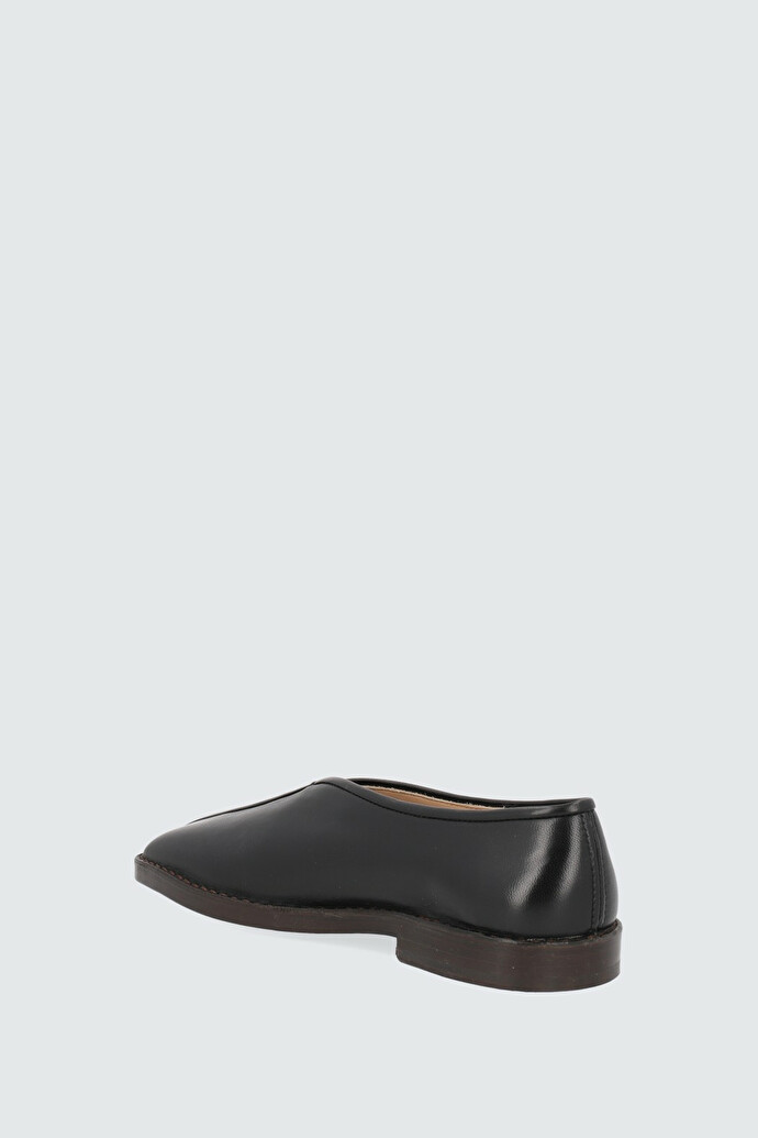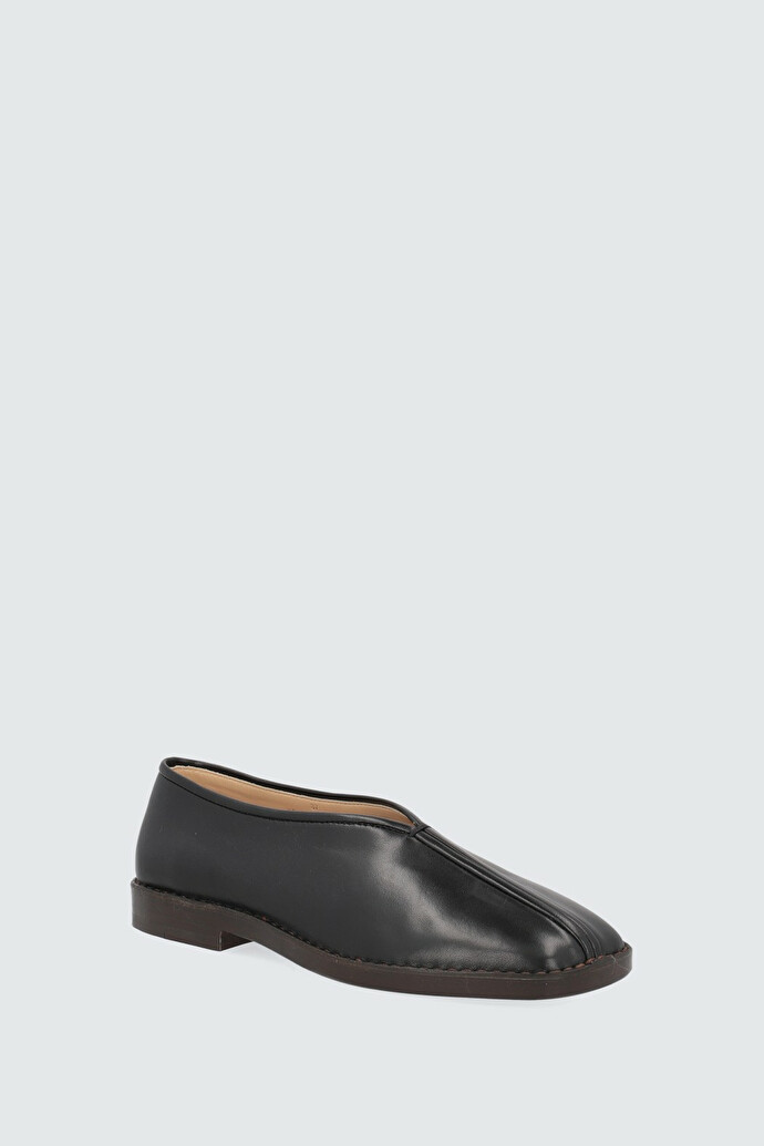Slip On Flat Piped Lemaire in leather with front relief detail, leather sole Color: Black