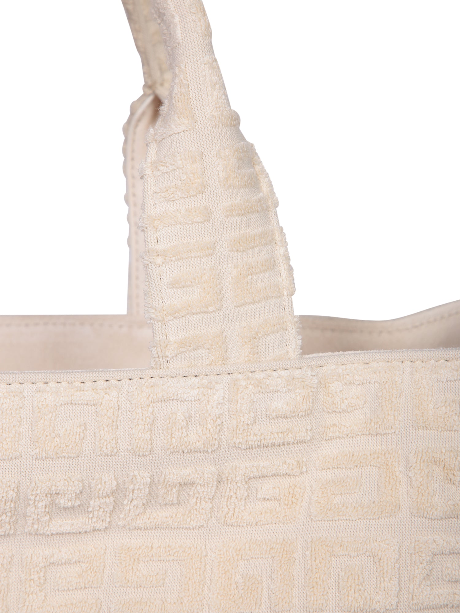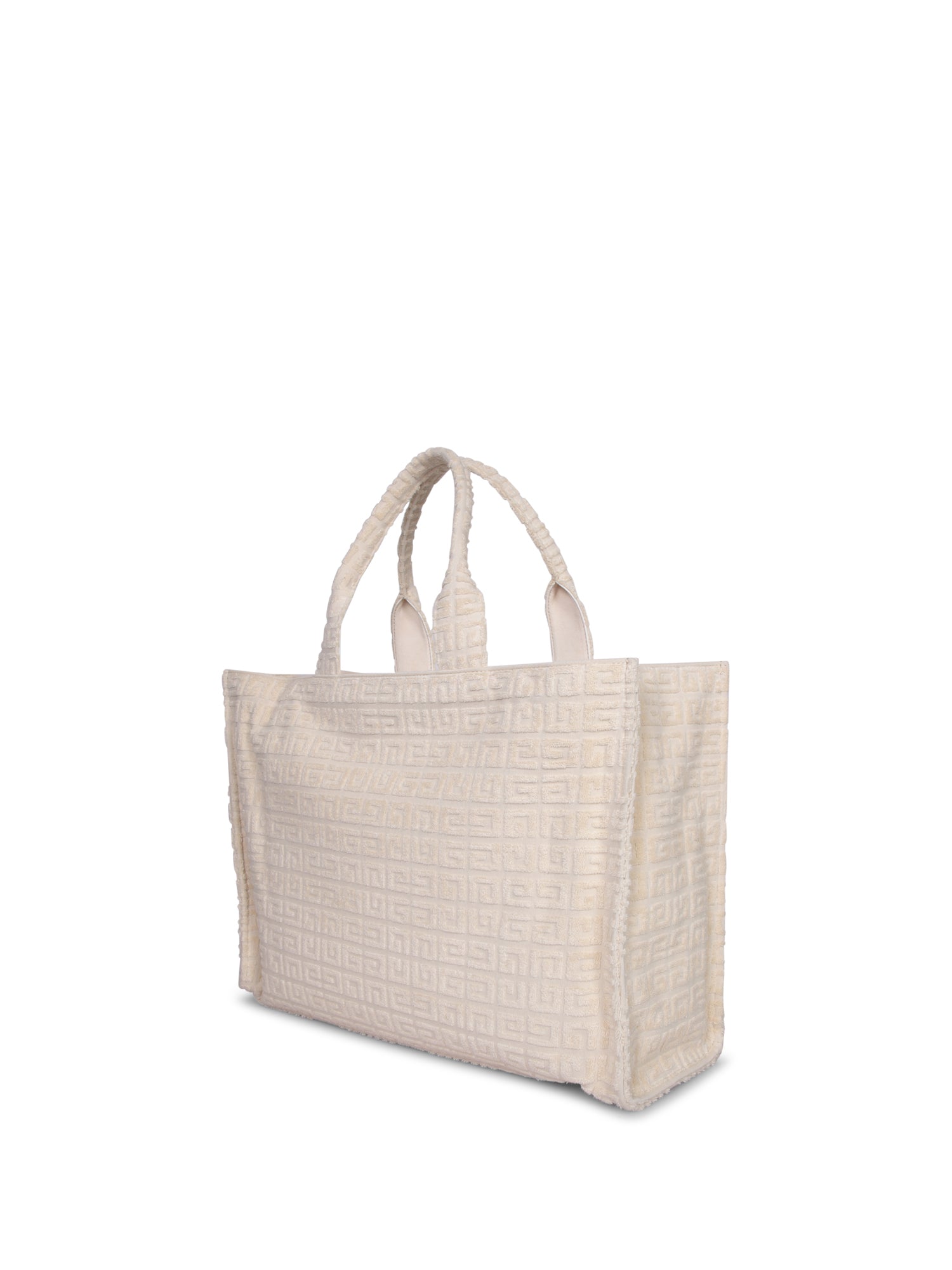 Towel-textured fabric tote bag. Features an all-over 4G logo design. Top handles and raw edges.