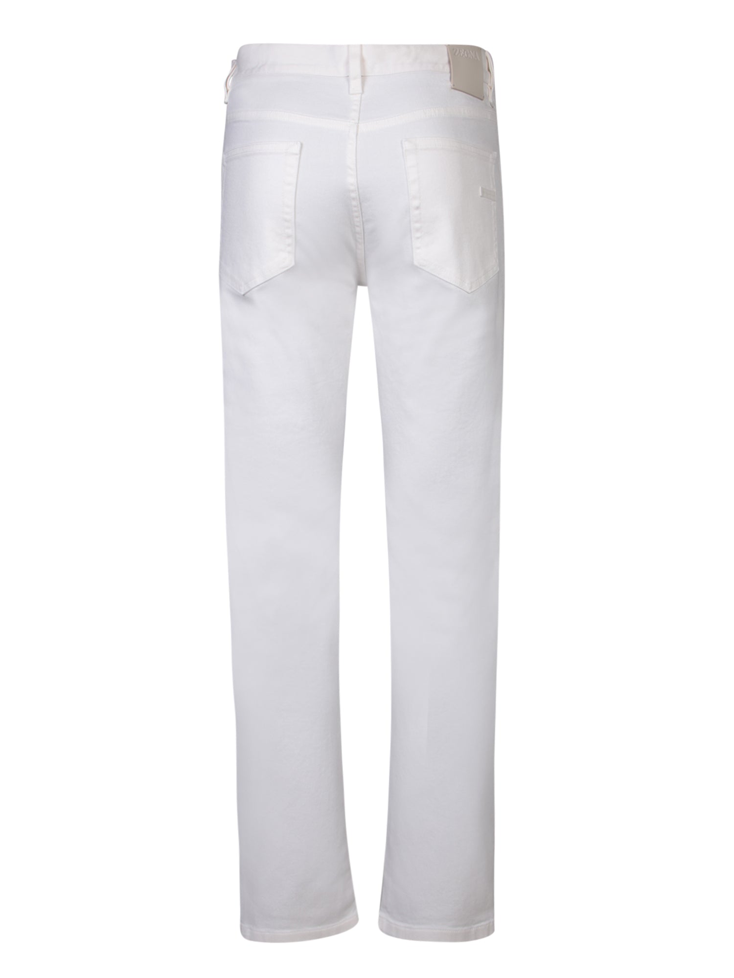 Five-pocket model. Regular fit. Front zip and button closure. Belt loops.