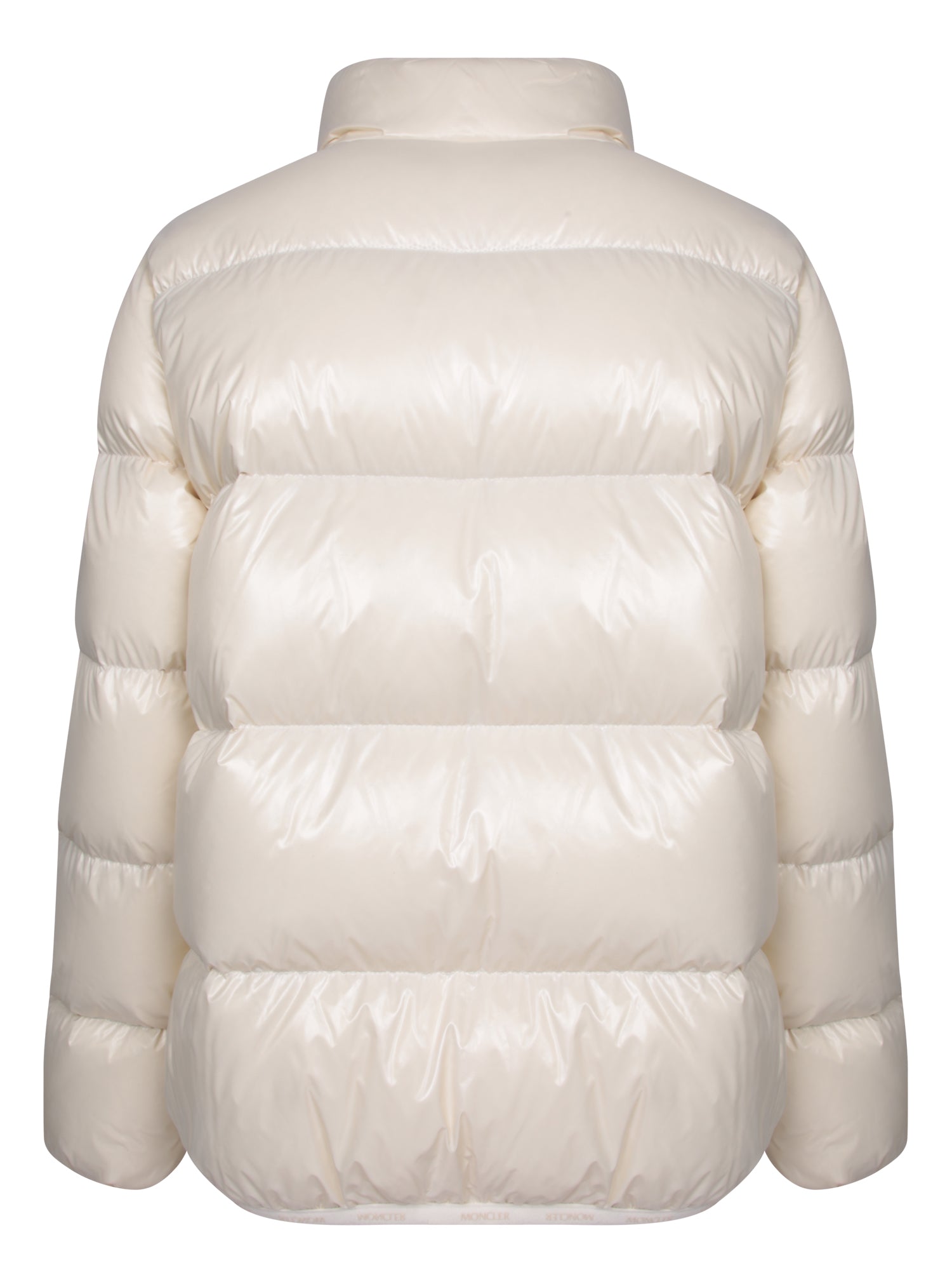 Down jacket with front zip closure. High collar. Internal elastic cuffs.