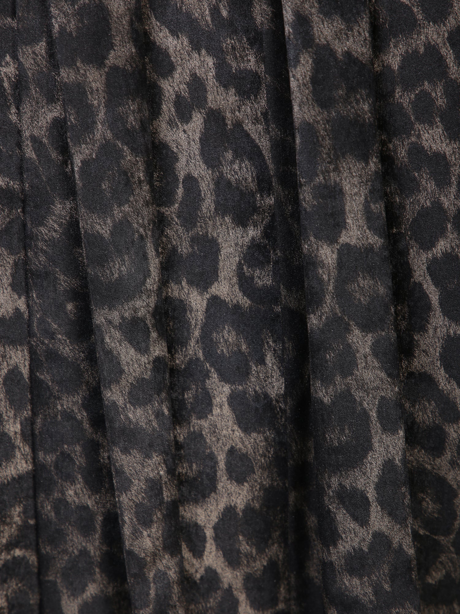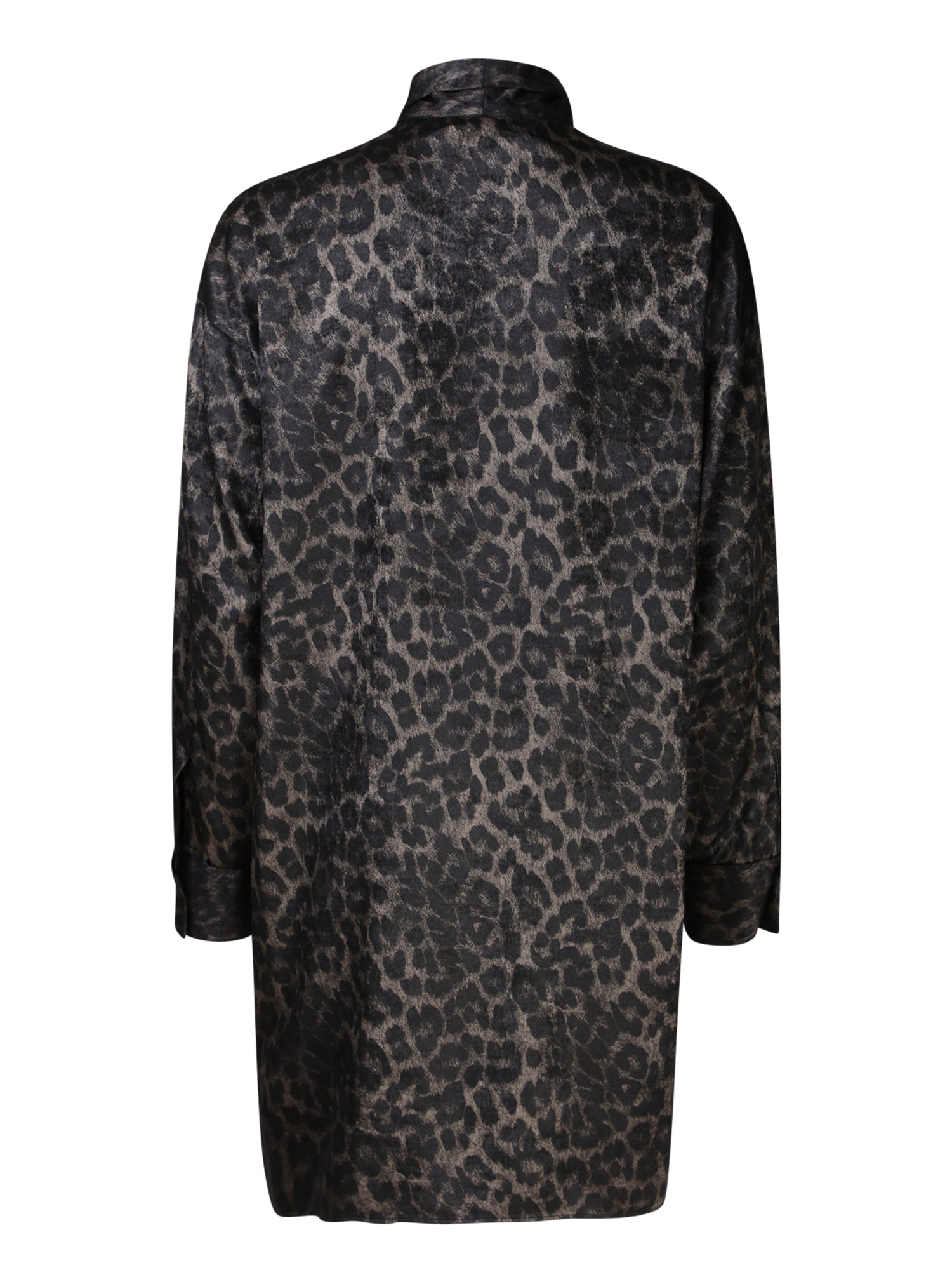 Acorus leopard-print mini dress in shades of black and beige by Blanca Vita with a bow to tie at the neck