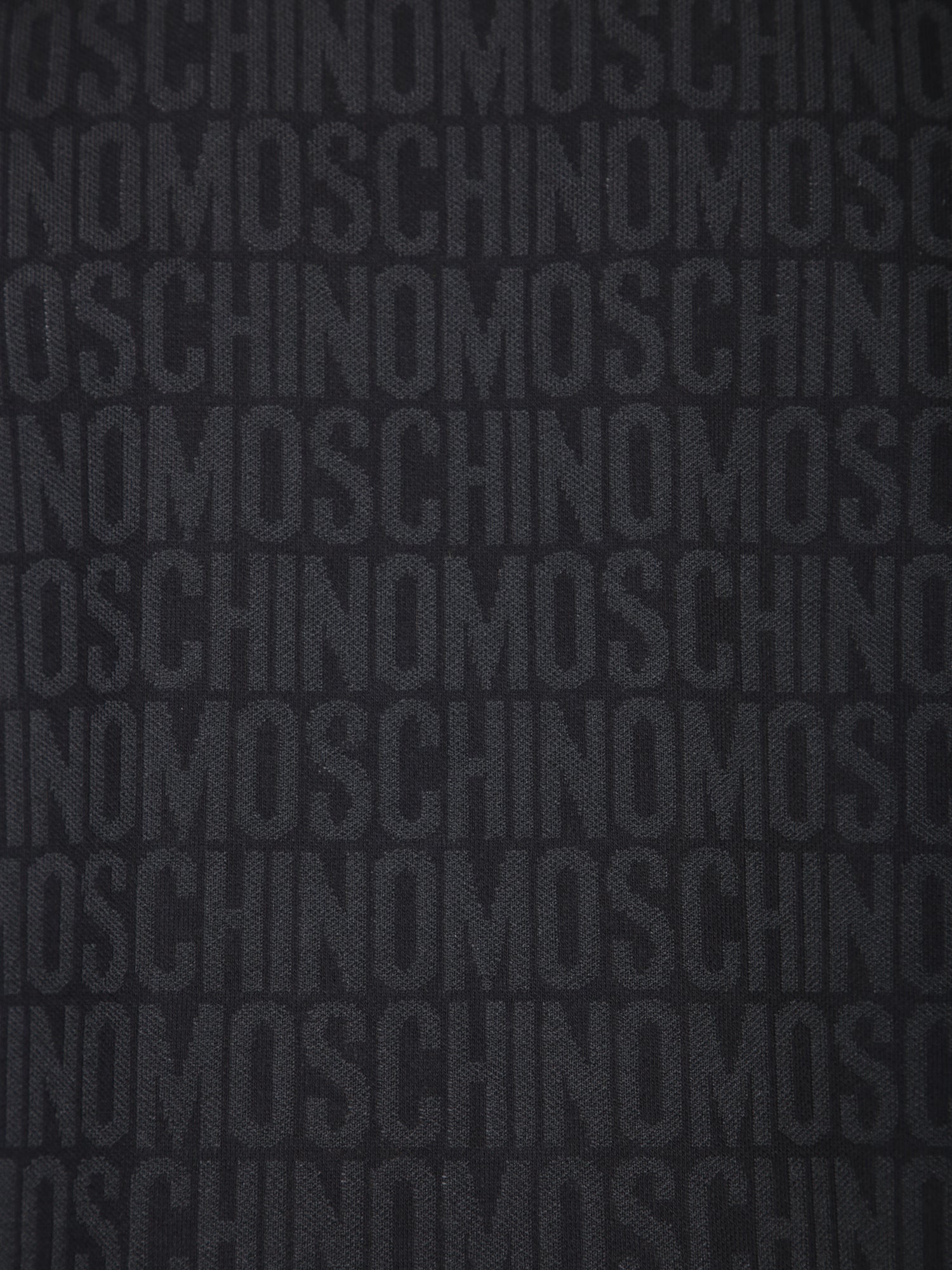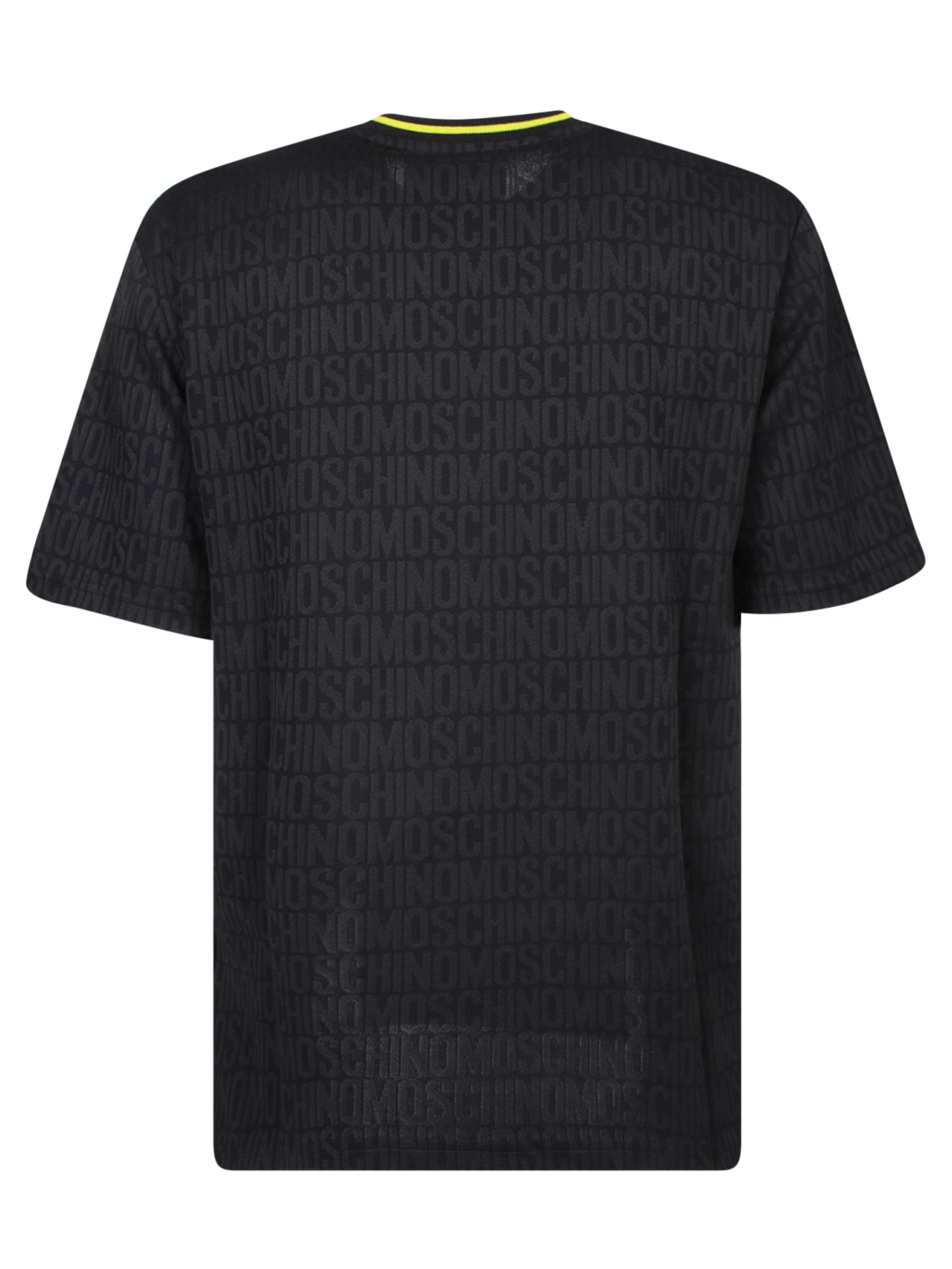 Short sleeves. Black fabric with tone-on-tone logo. Crew neck with contrasting yellow detail.