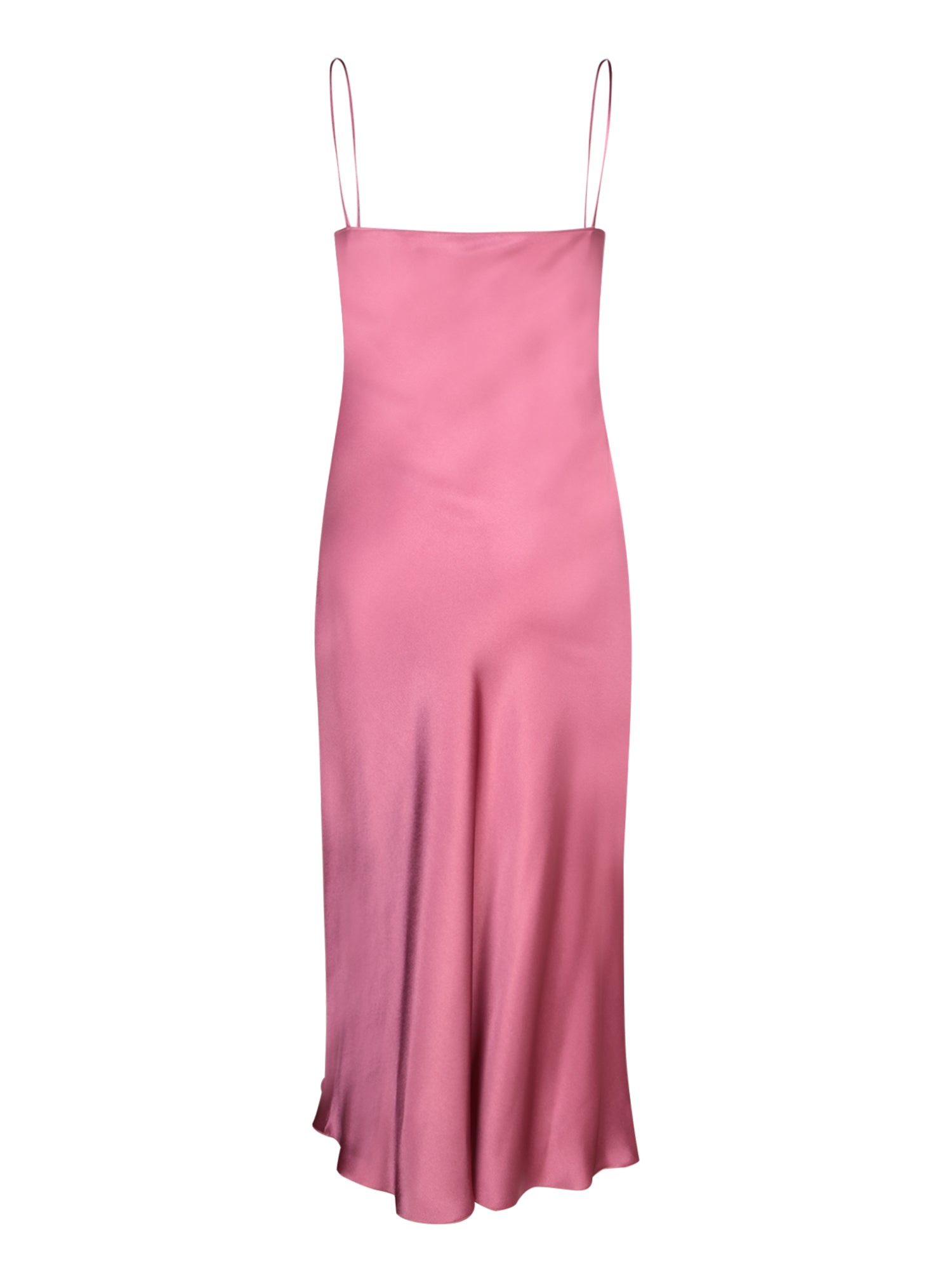 Mid-length slip dress. Satin finish with drapery at the bust level. Ultra-thin straps and fluted hem.