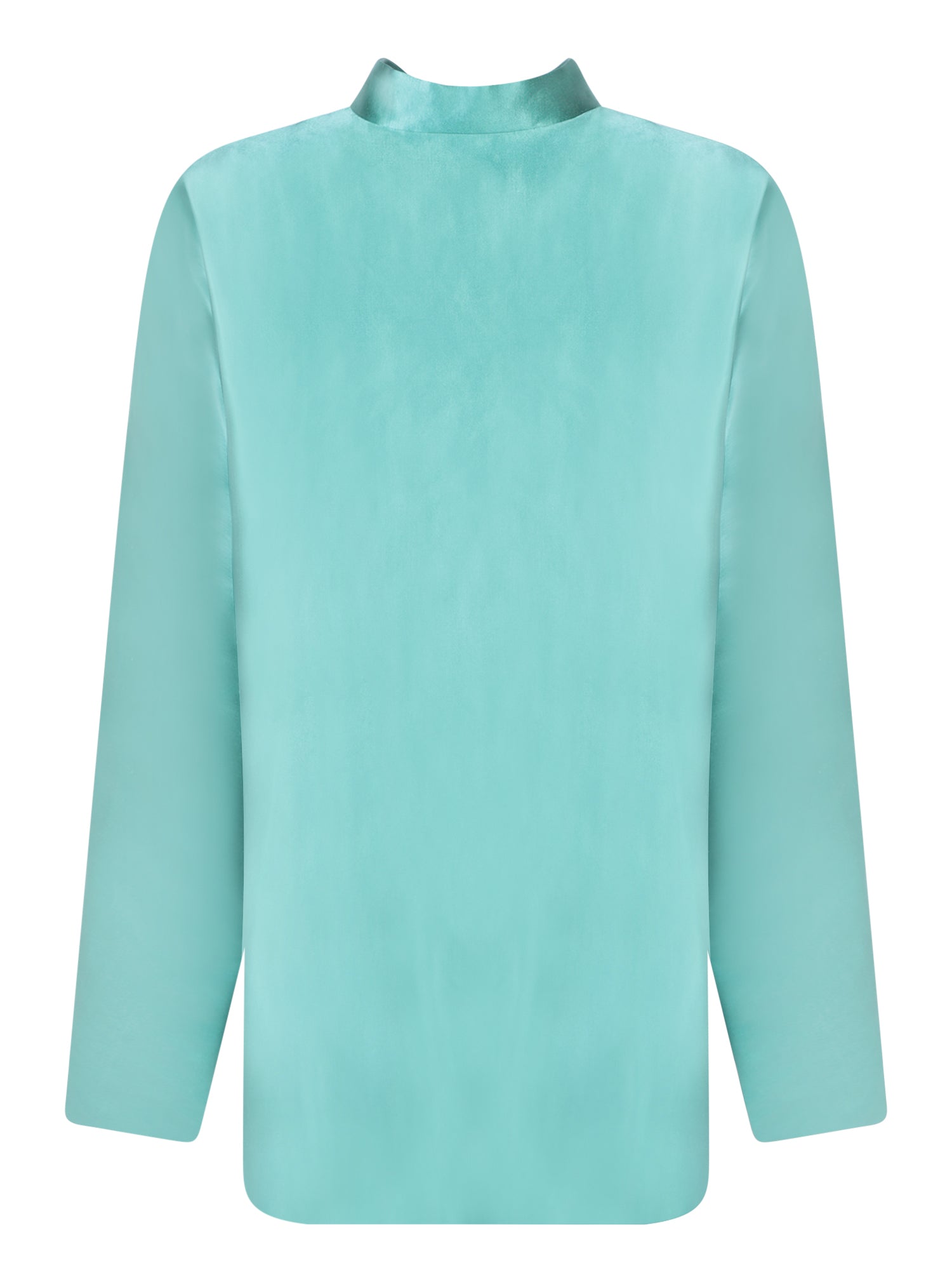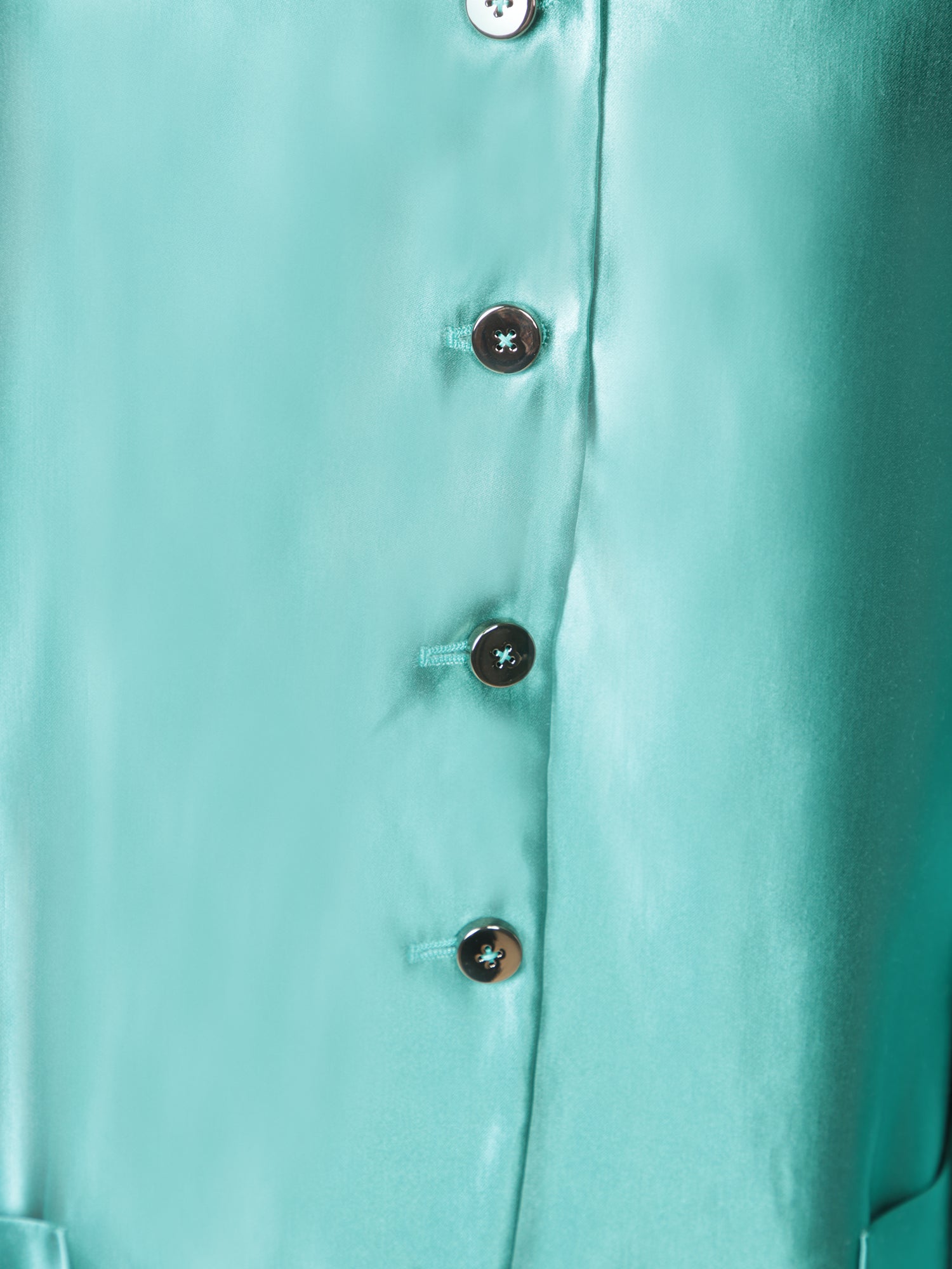 Silk and linen caban jacket in aqua green. Front button closure. Welt pockets.