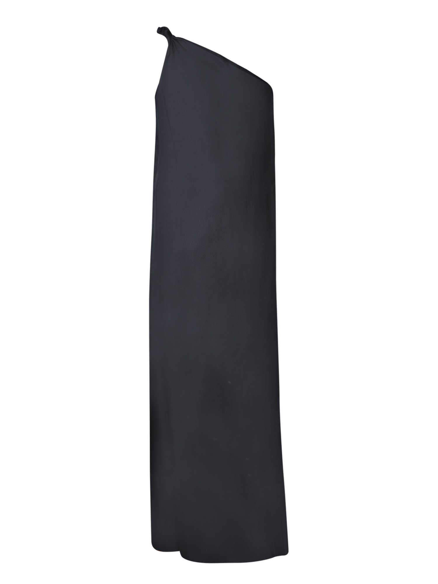 One-shoulder long silk dress. Asymmetrical finishes. Side slit. Invisible zipper closure.