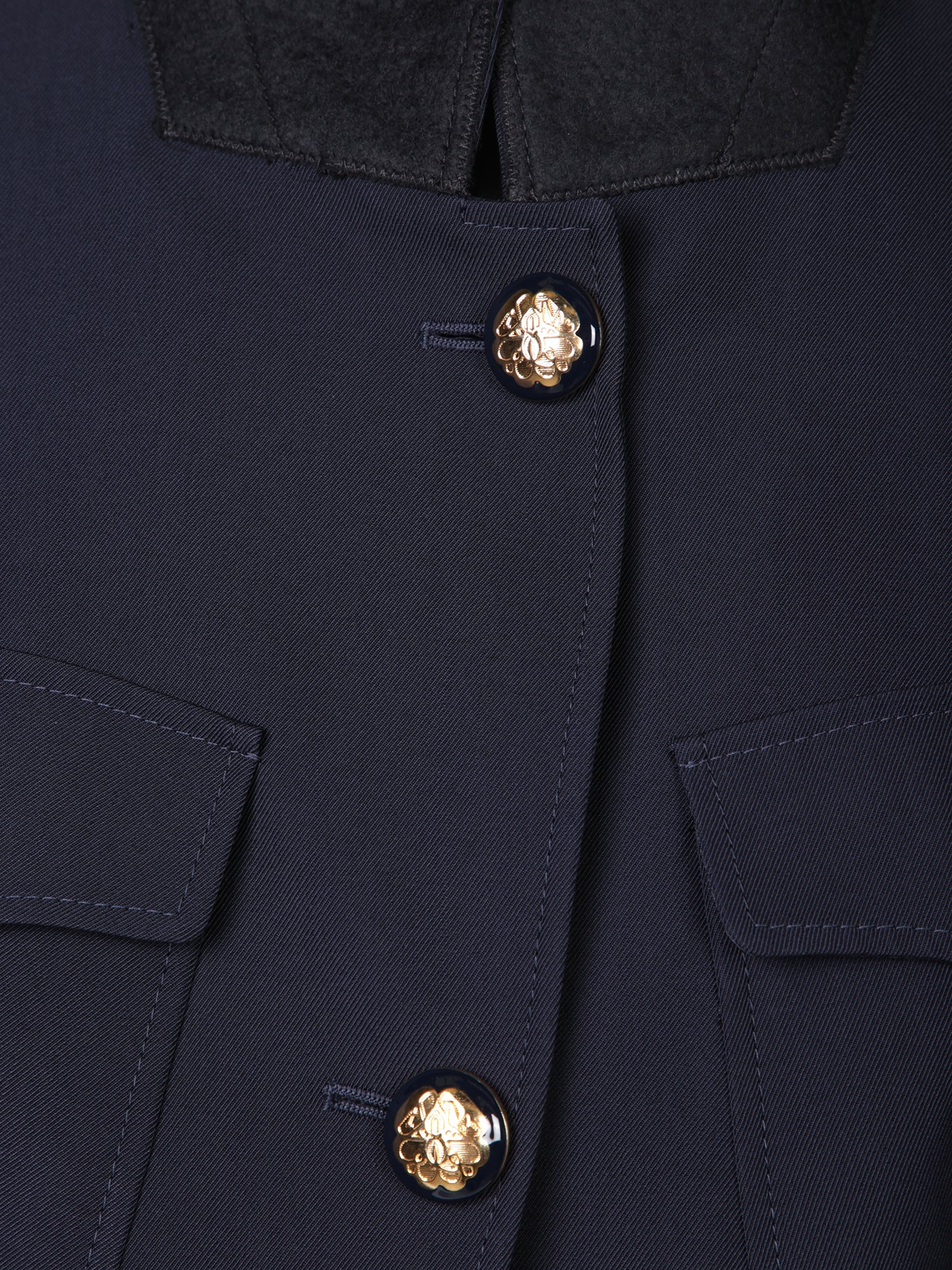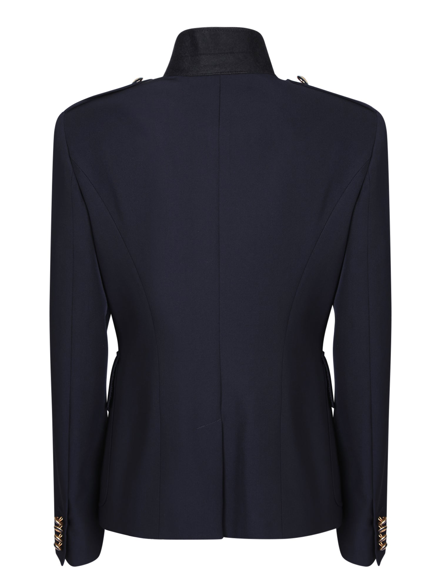 Alexander McQueen's signature jacket features an asymmetrical cut, shoulder pads and flap pockets