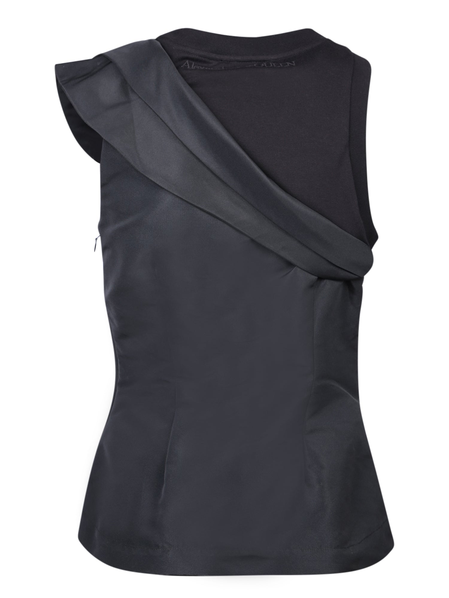Following the brand's creative style, this black top from Alexander McQueen features an asymmetric design