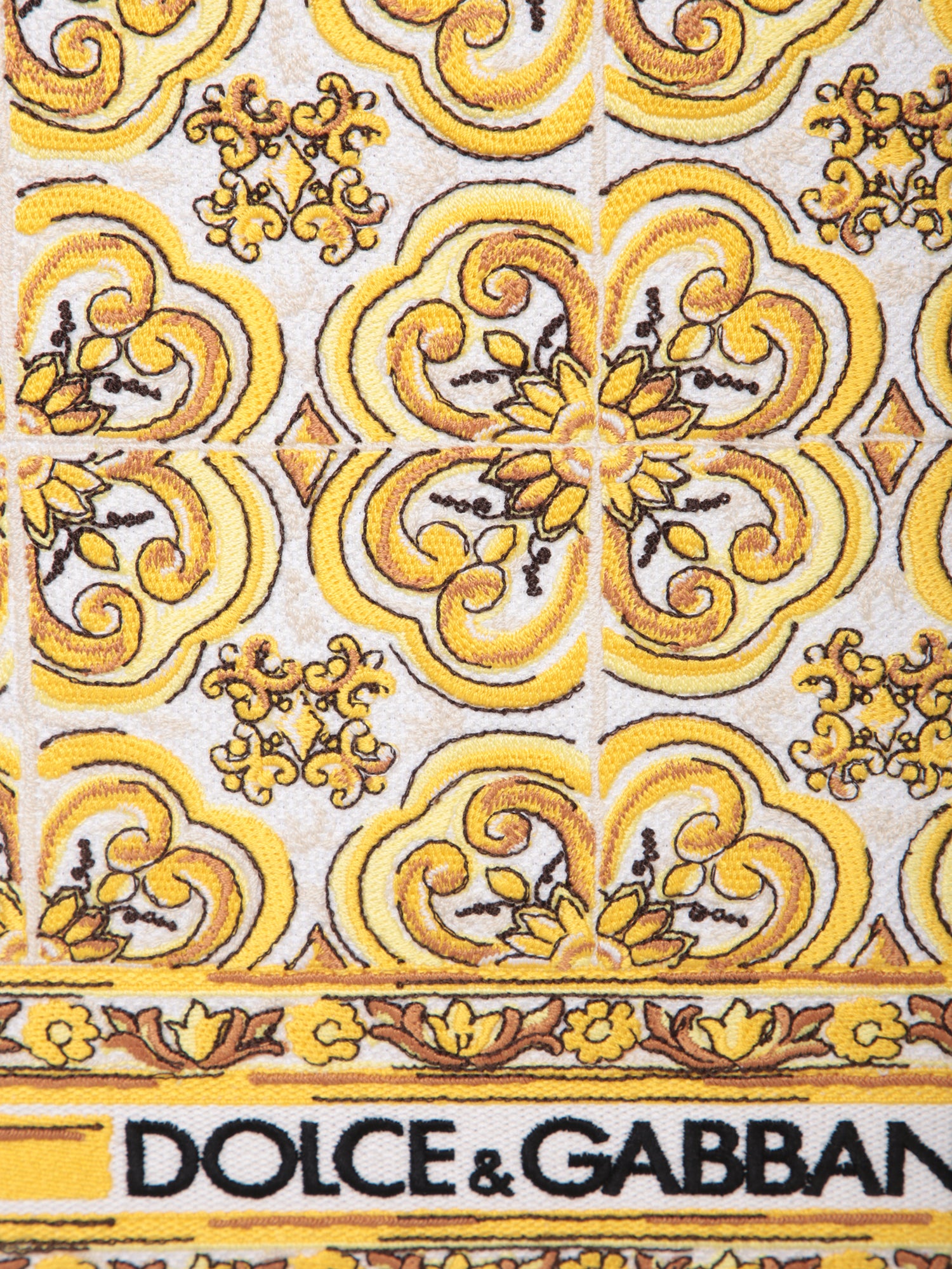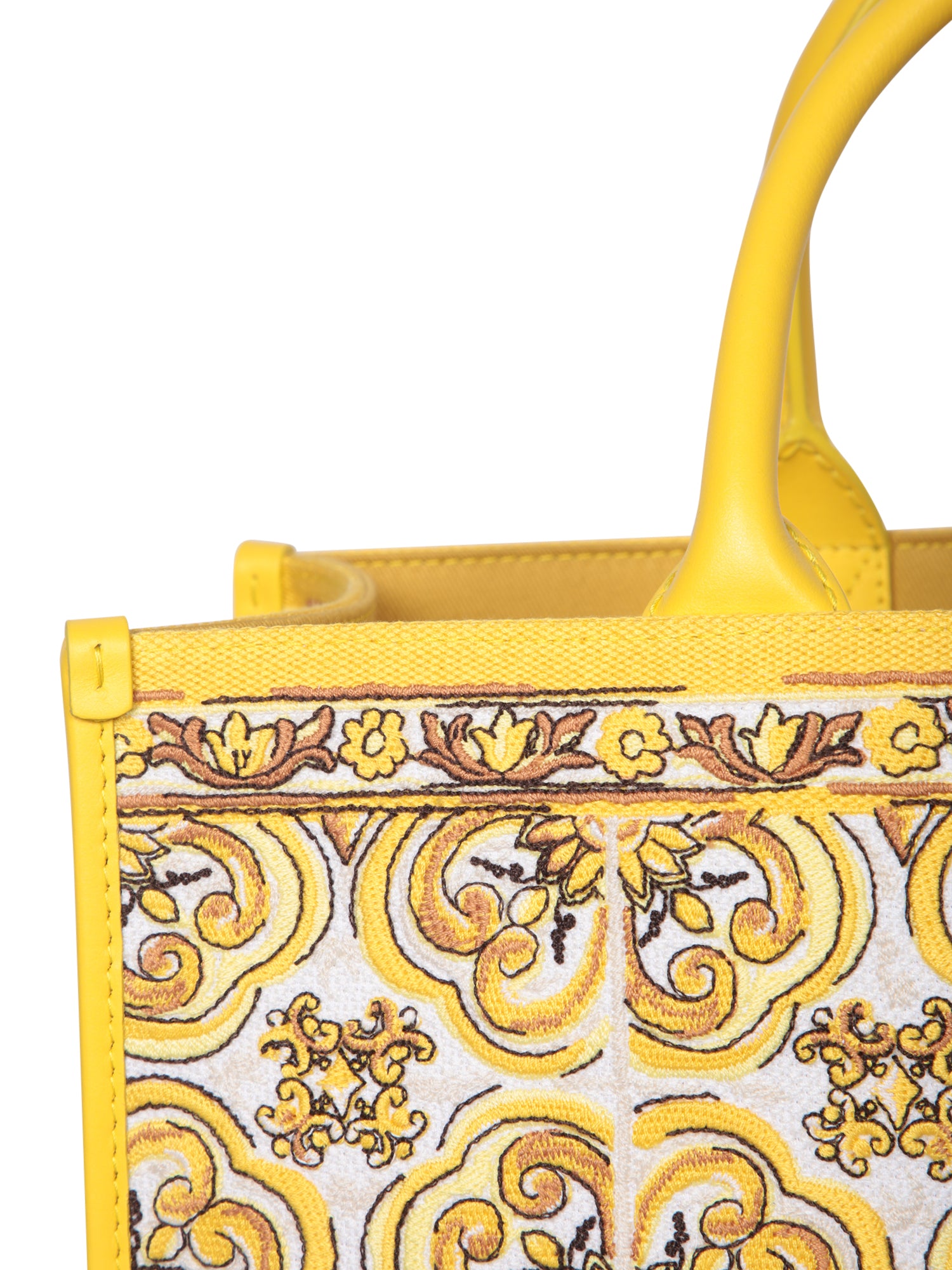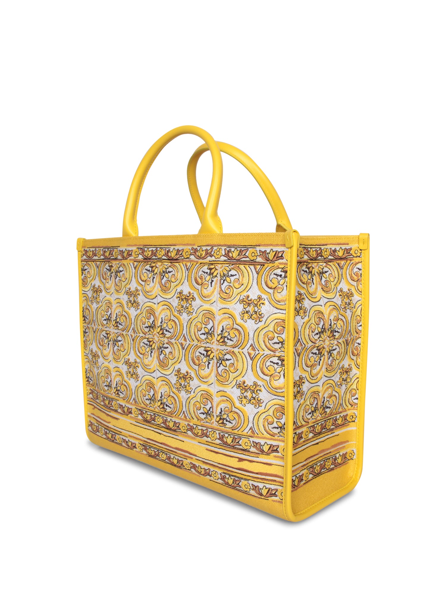 Leather tote bag with azulejos print. Rounded top handles. Magnetic top closure.