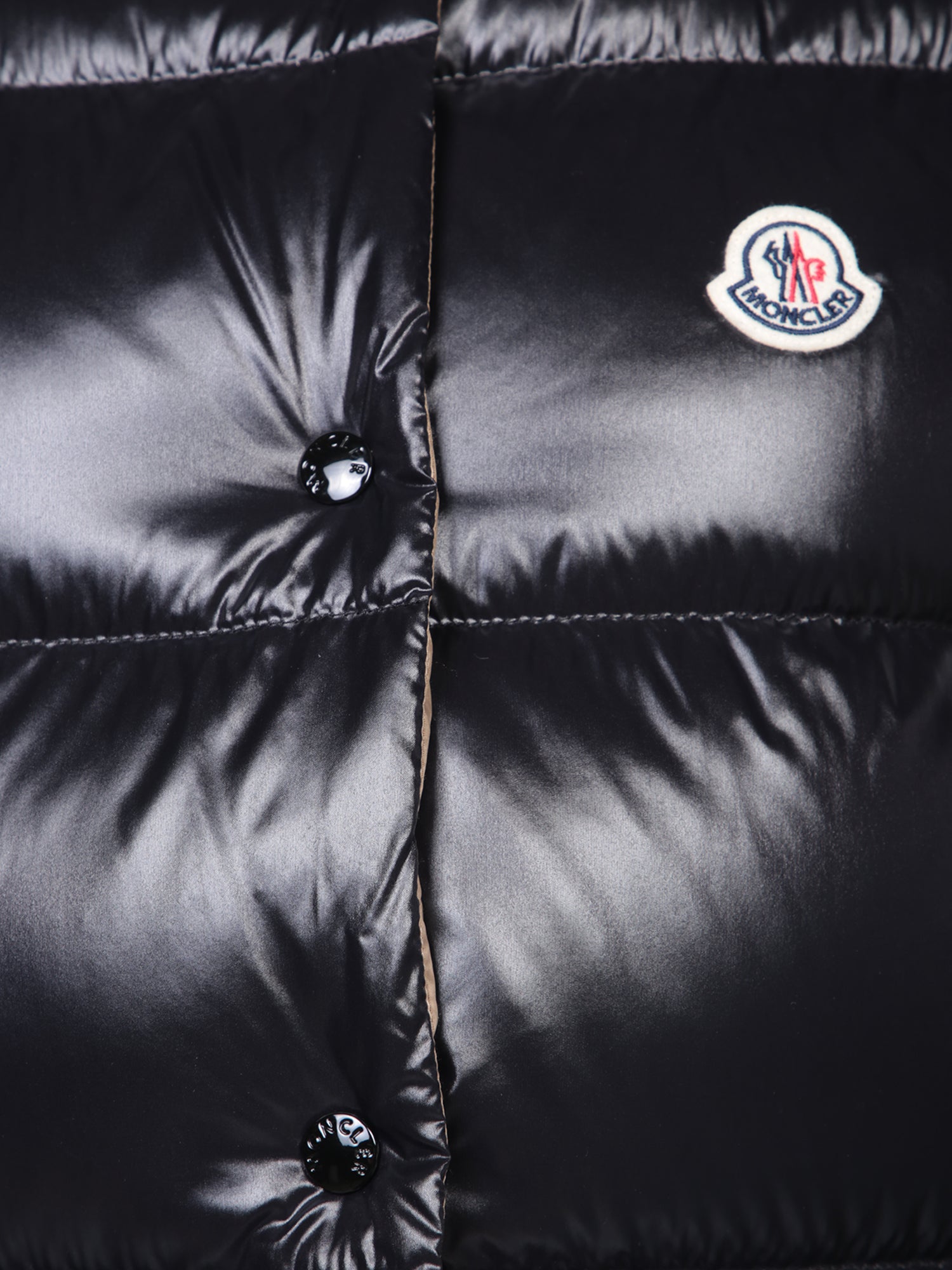 Sleeveless vest. Glossy fabric. Snap button closure.