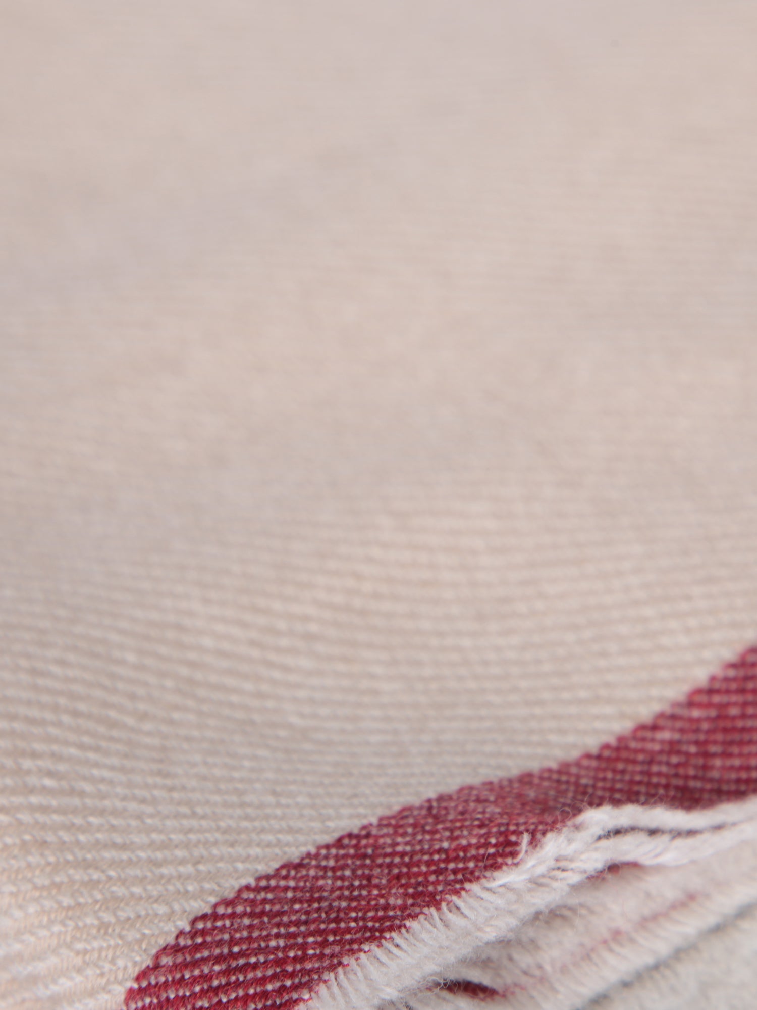 Cashmere scarf with contrasting border. Refined ribbed and diagonal weave. Fringed edges.