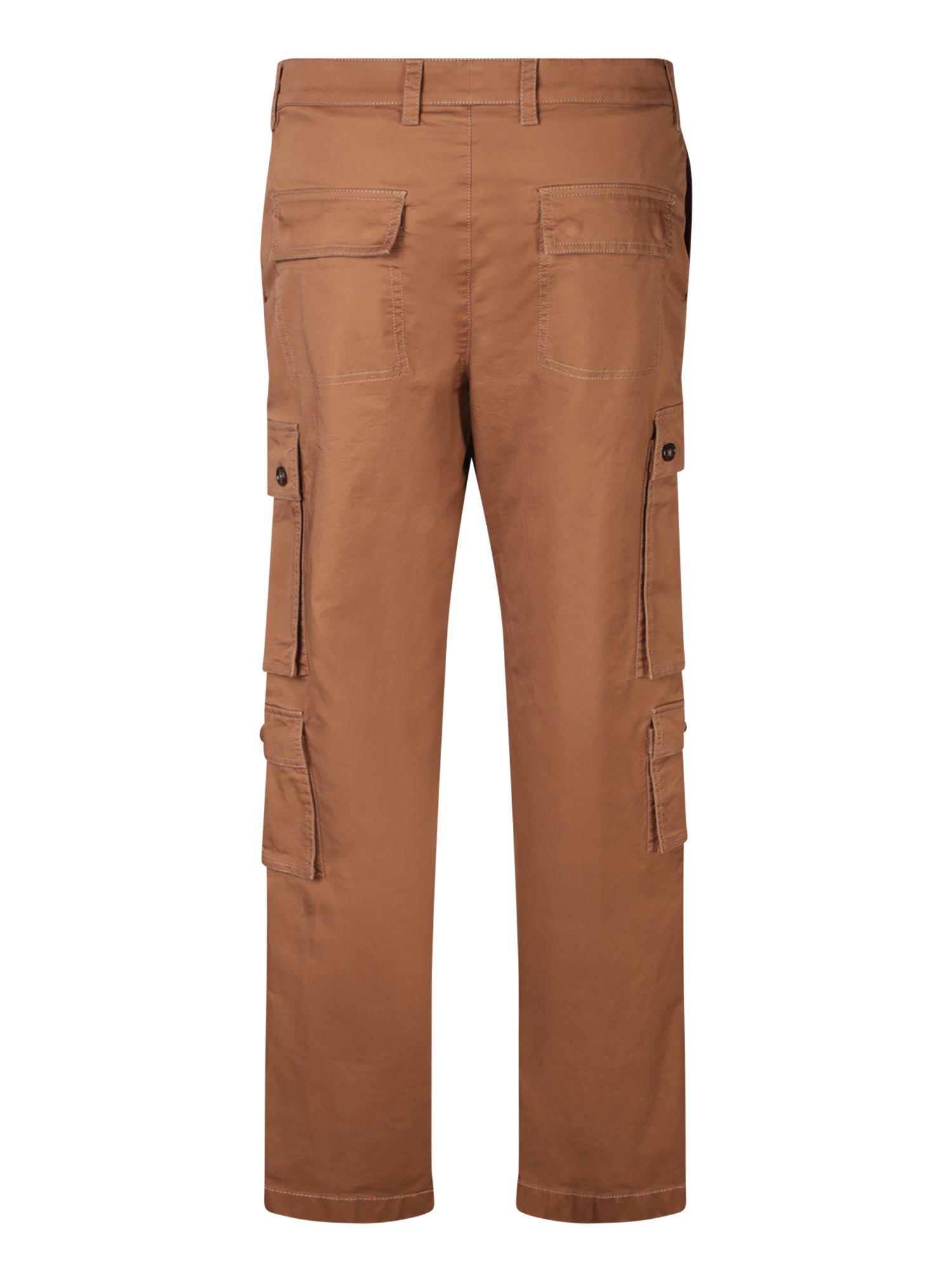 Durable fabric pants. Multipocket with button closures. Adjustable waist with belt loops.