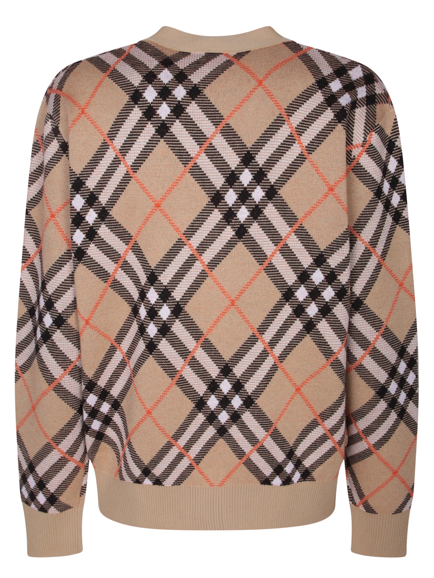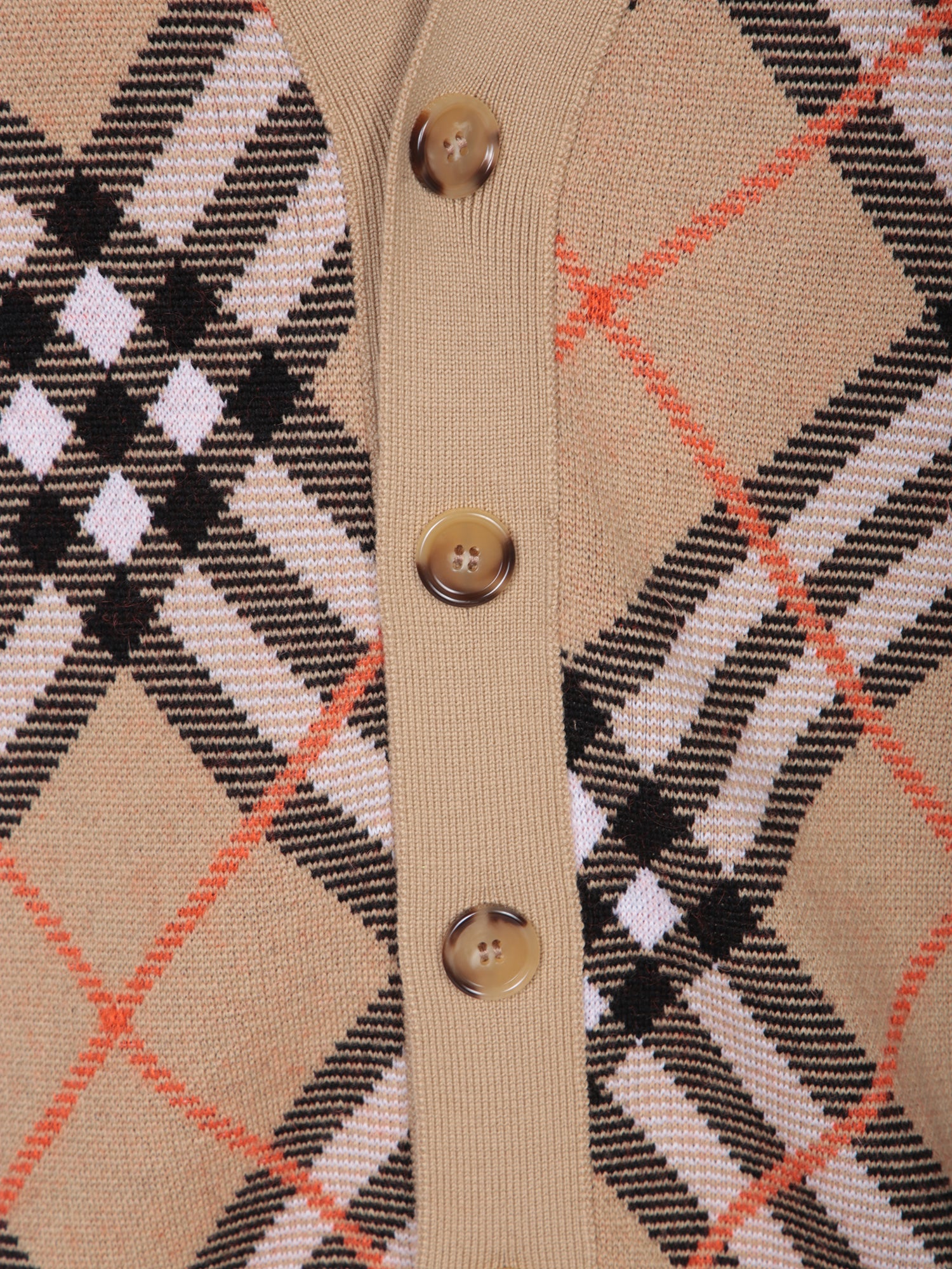 Long-sleeved cardigan with check pattern. V-neck. Front button closure.