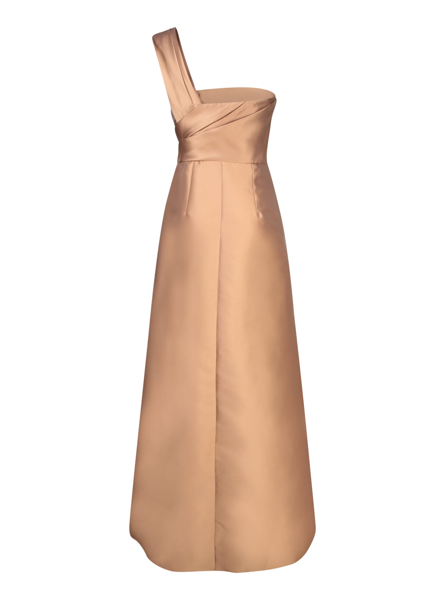 Sleeveless dress, asymmetric neckline, crossover bust design, side draping.