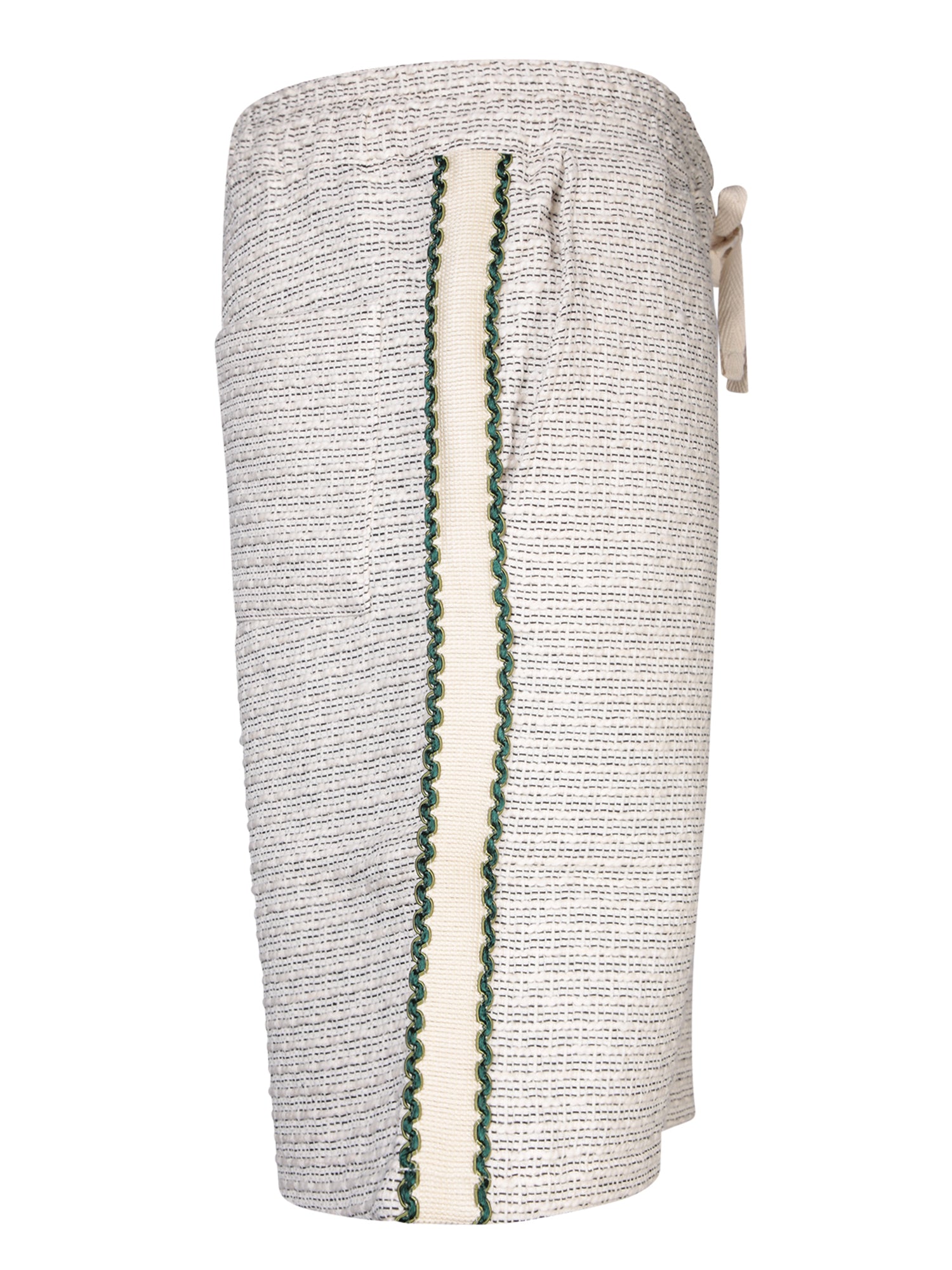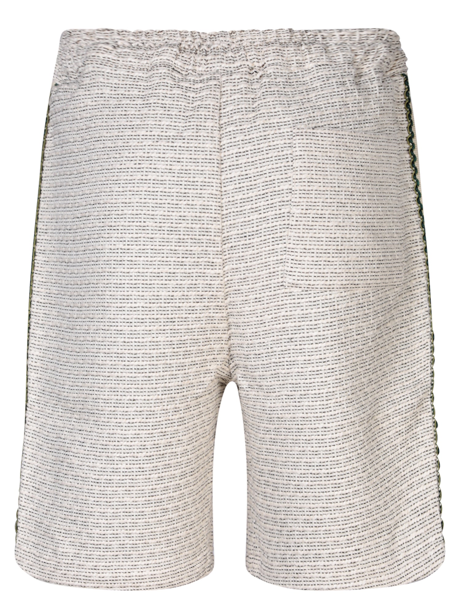 Tweed fabric Bermuda shorts. Adjustable waist with drawstring. Finished with contrasting side detail.