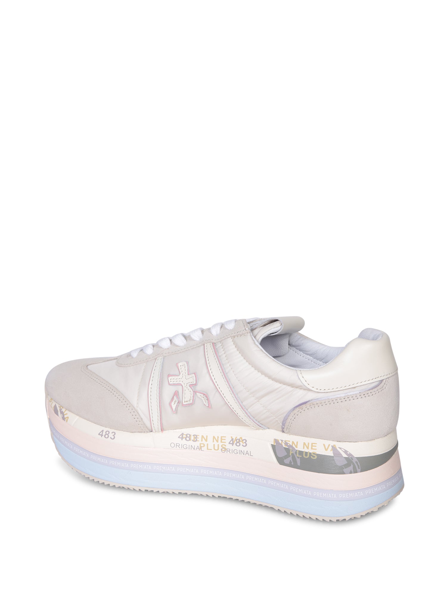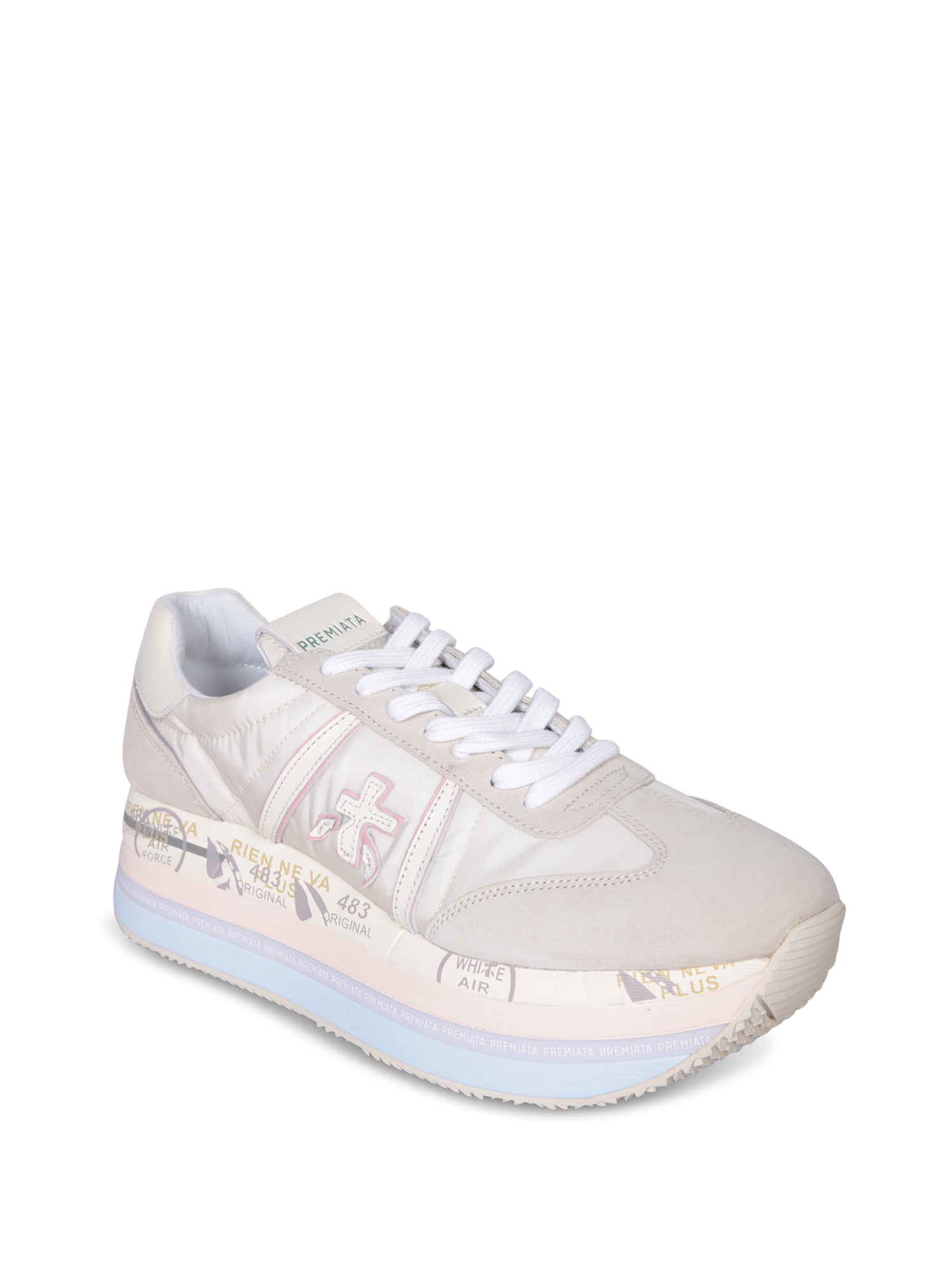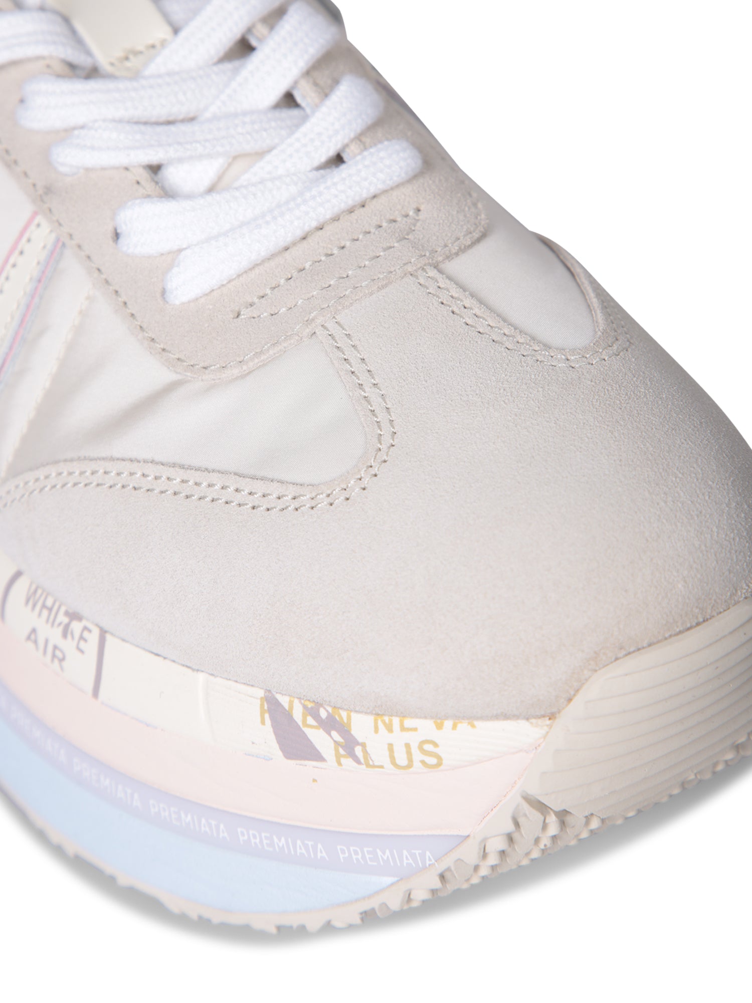 Suede and mesh upper. Decorative side logo. Rubber sole.