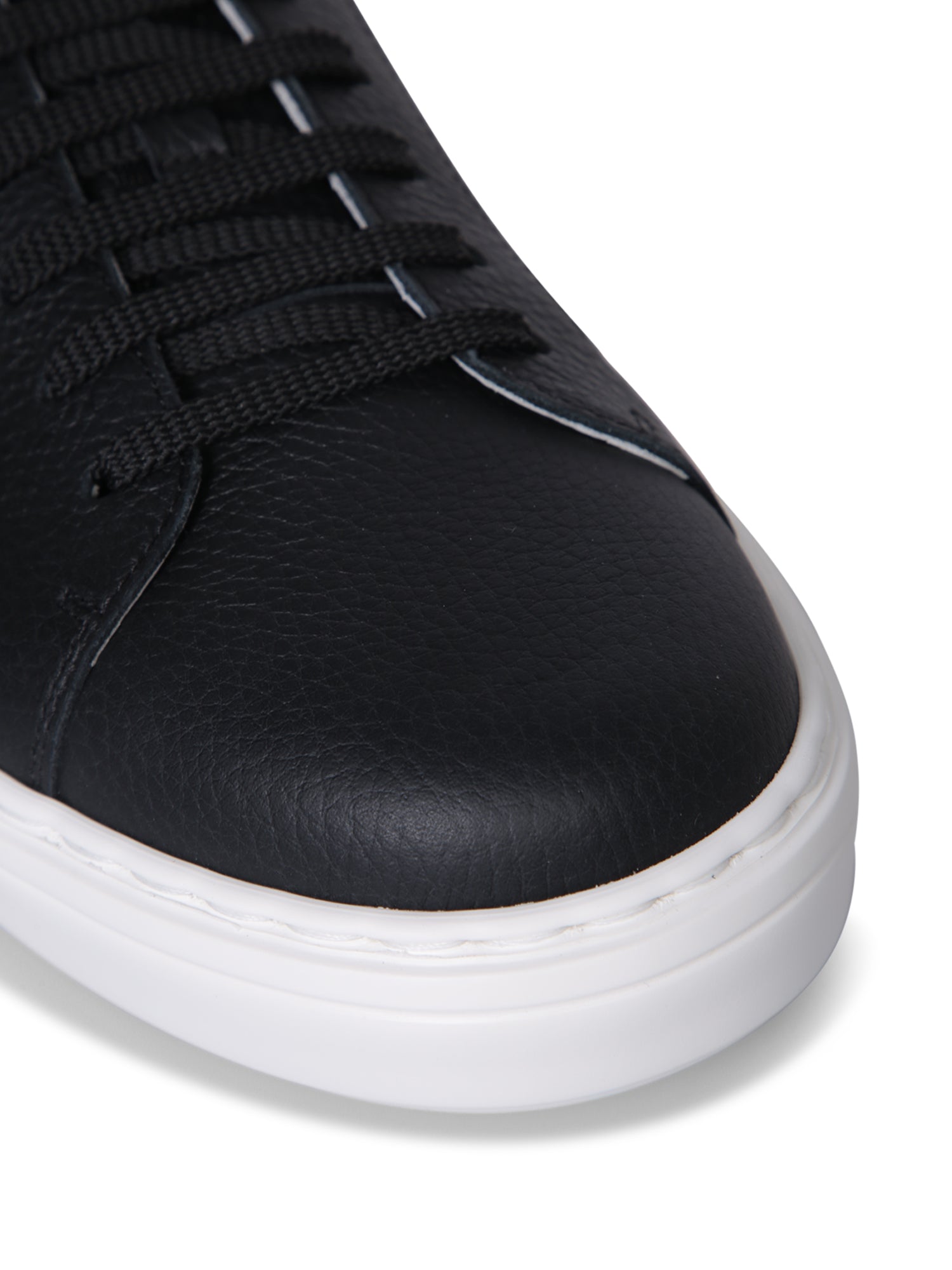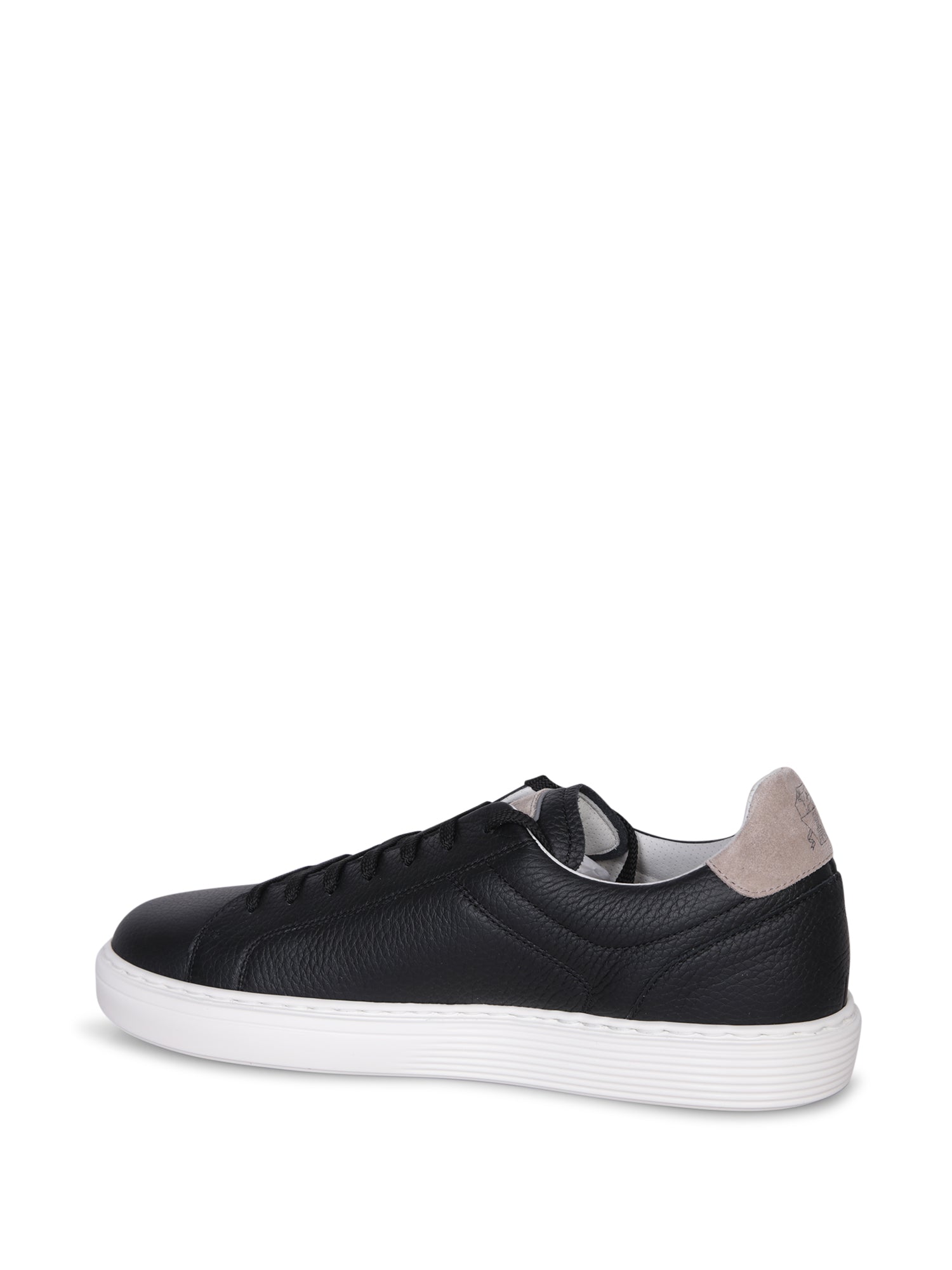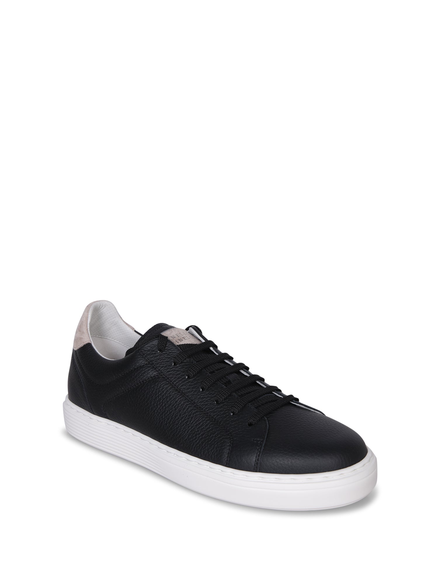 High-quality leather sneakers. Black and beige color combination. Minimalist design with white sole.
