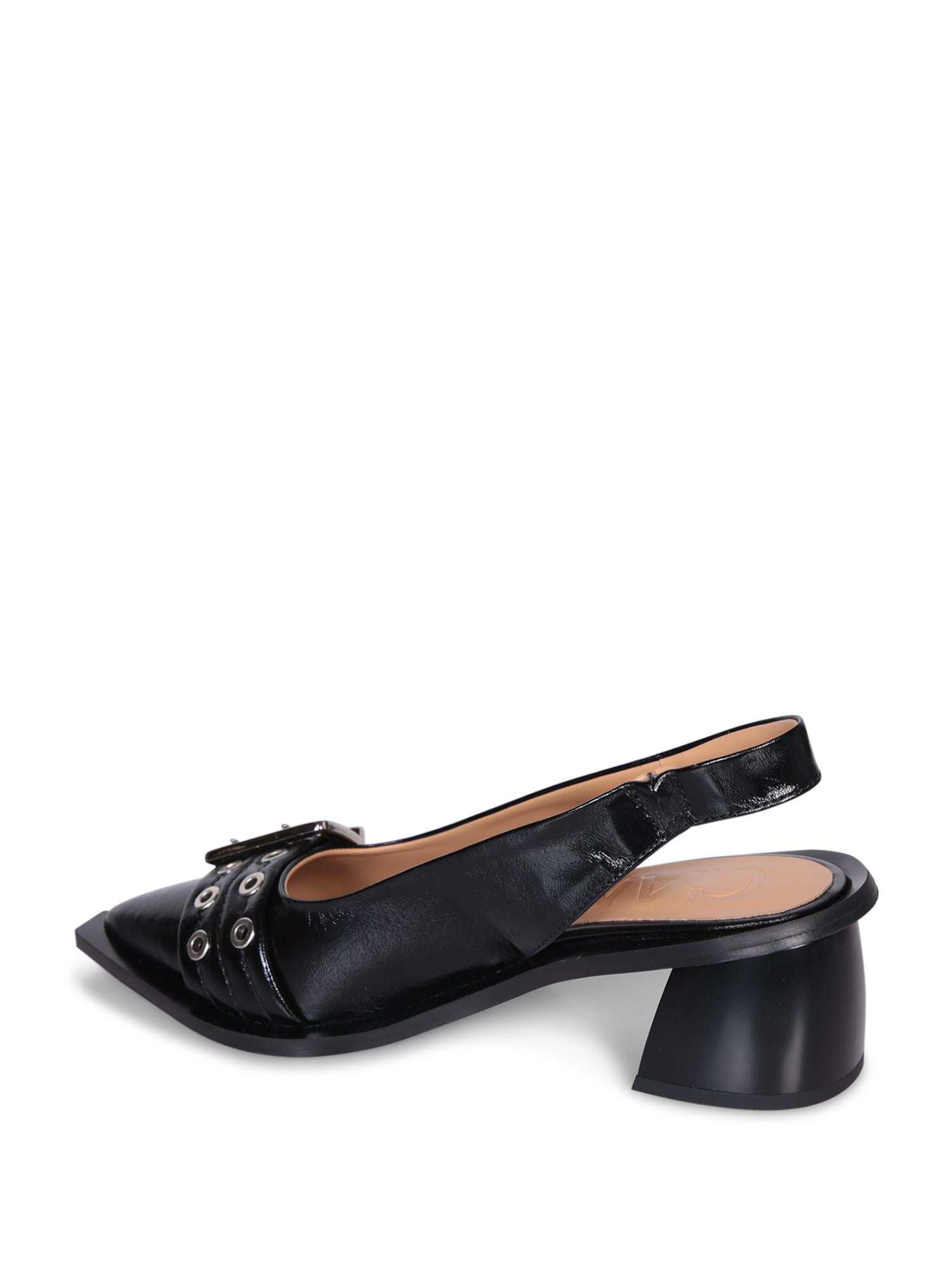 Elegant ballerinas. Metallic buckle detail. High-gloss Naplack finish.