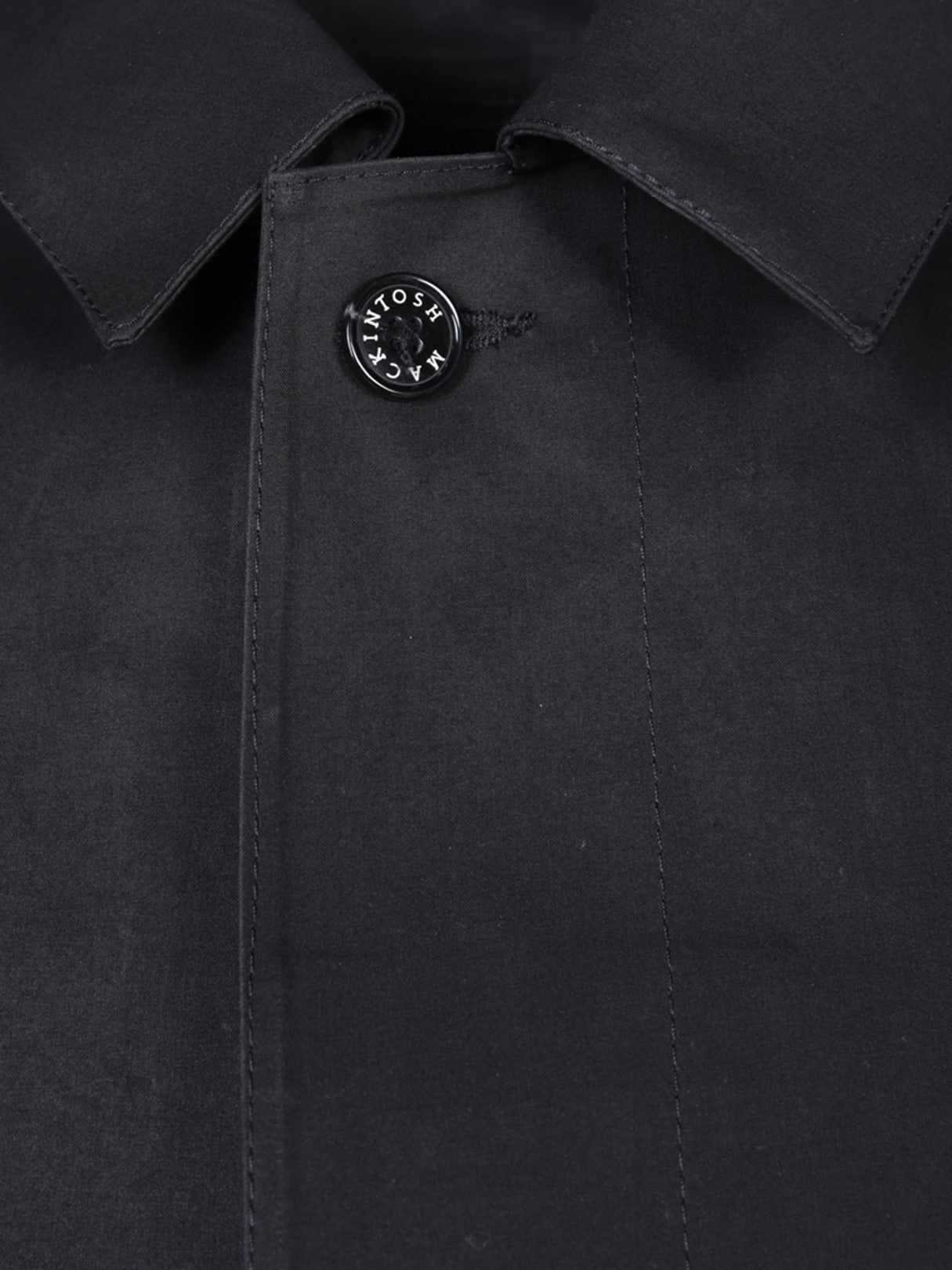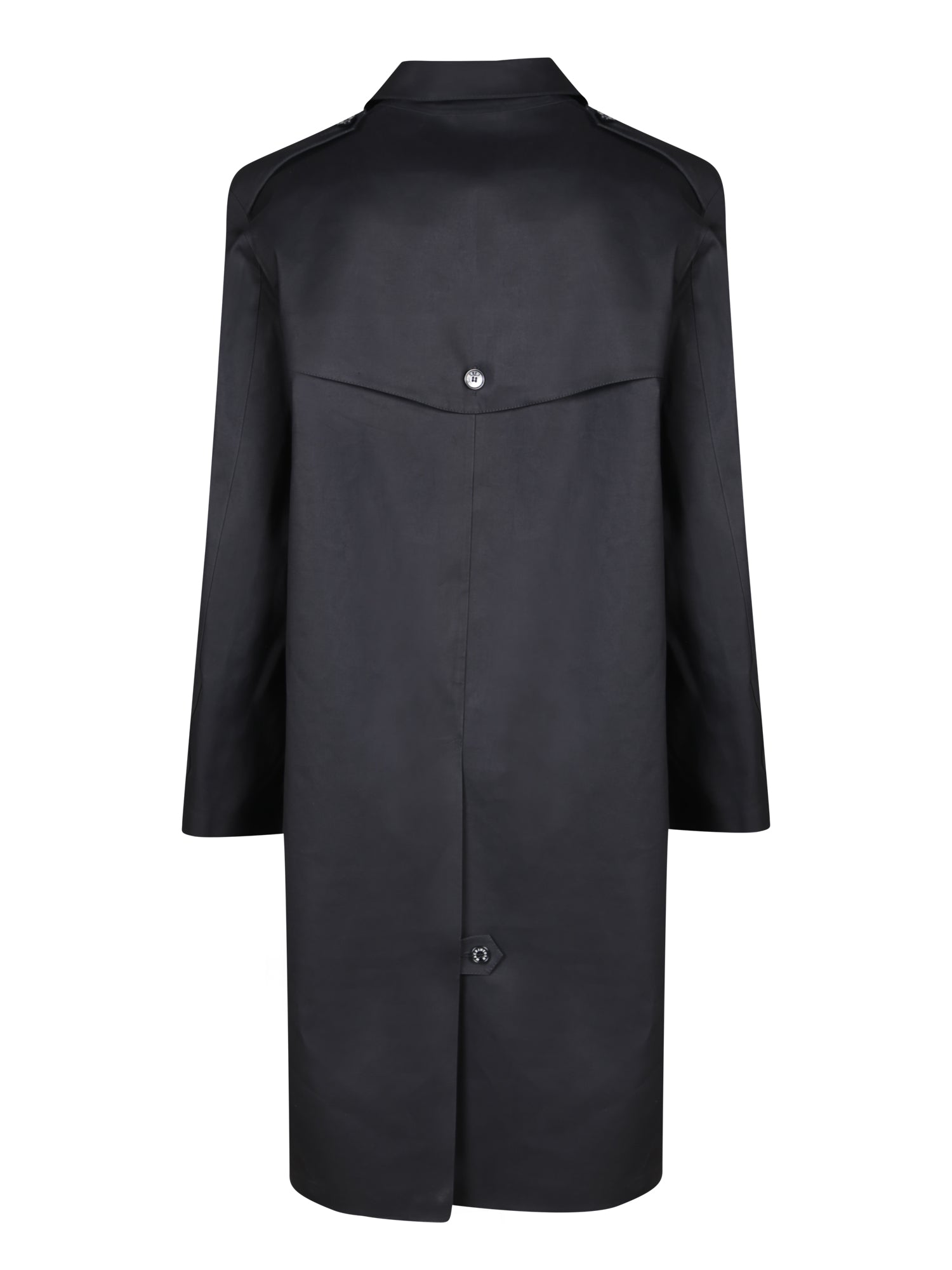 Elegant black coat crafted in collaboration between Junya Watanabe and Mackintosh. Features a minimalist design with precise finishings and a cut that provides a modern and clean silhouette.