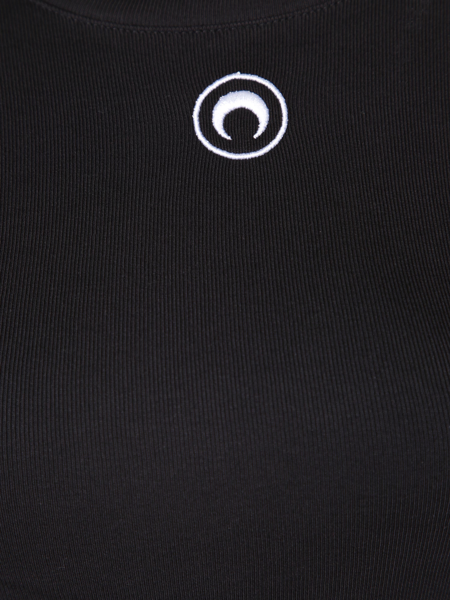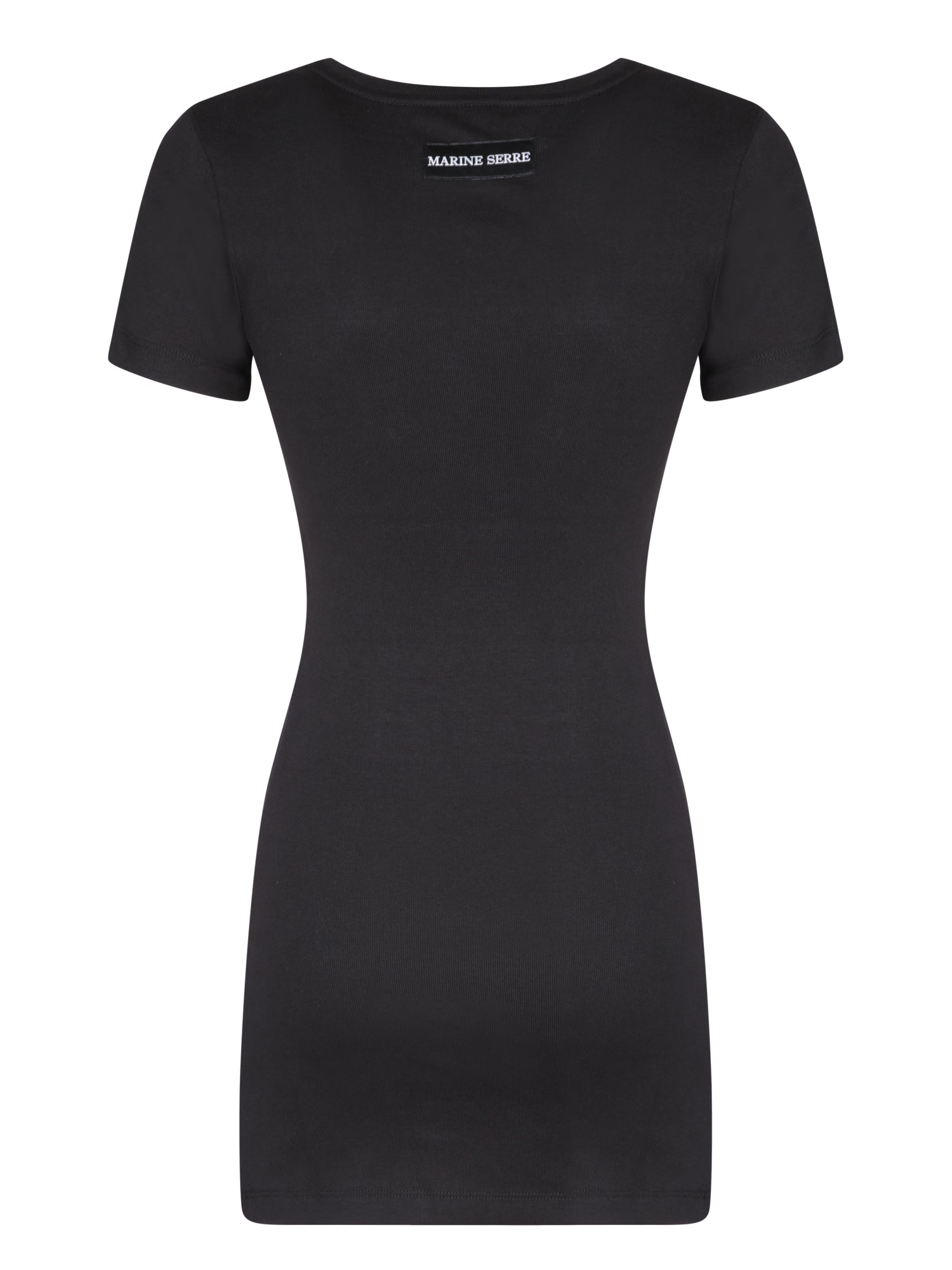 Short sleeves. Contrasting crescent moon symbol on the front. Crew neckline. Mini length.