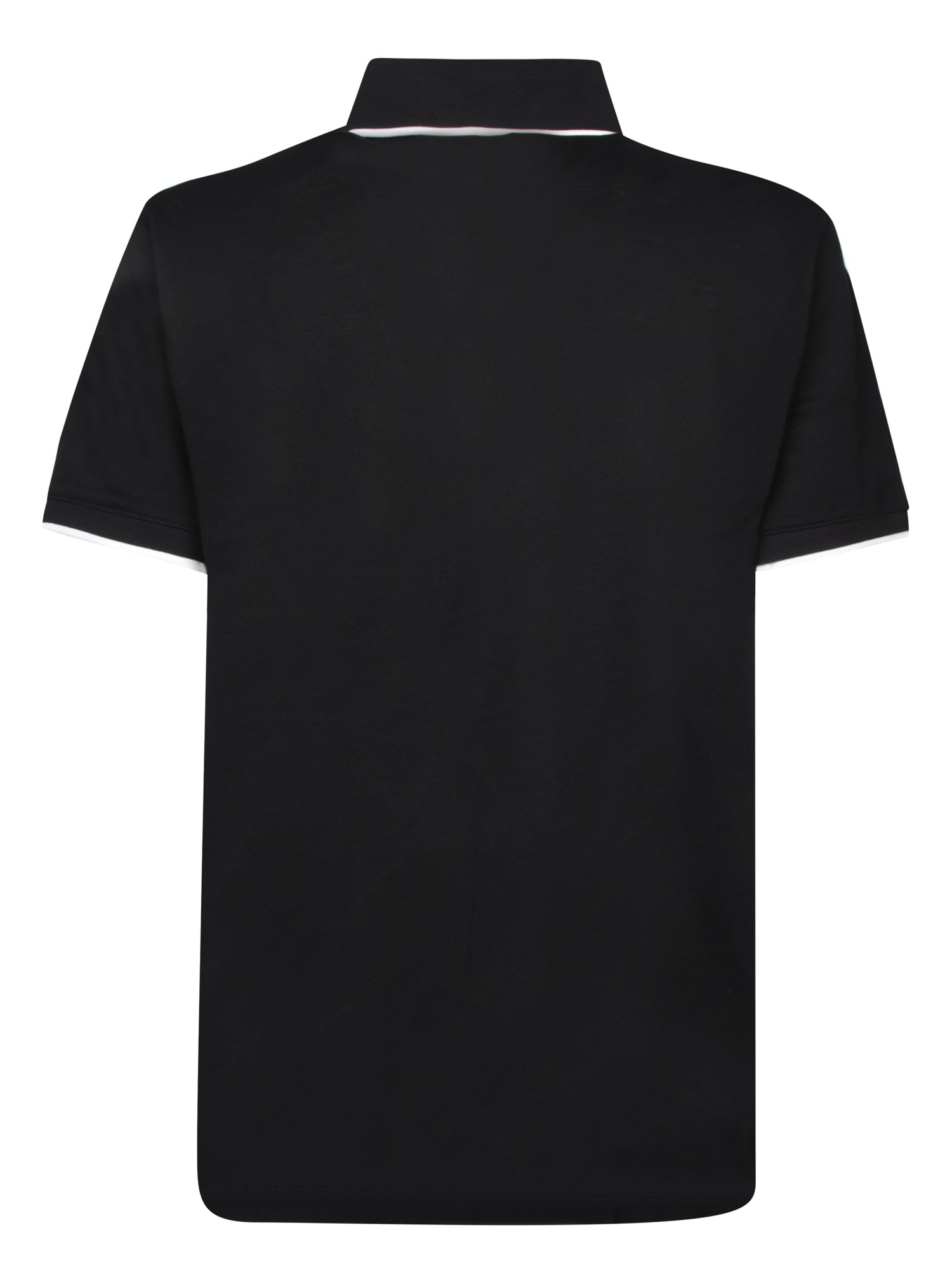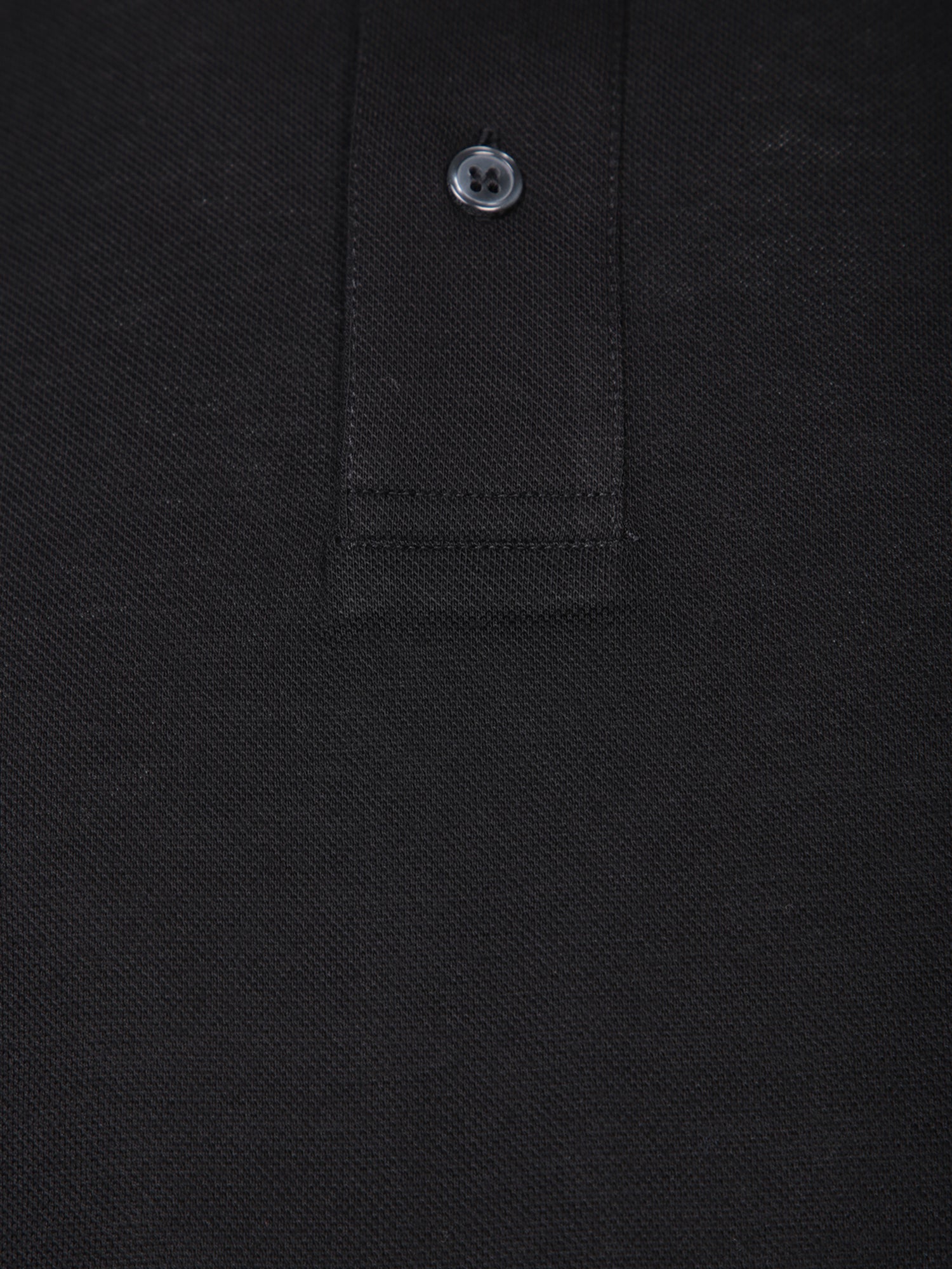 Short sleeves. Contrast white and pink collar. Three-button placket. Small embroidered logo on the chest.