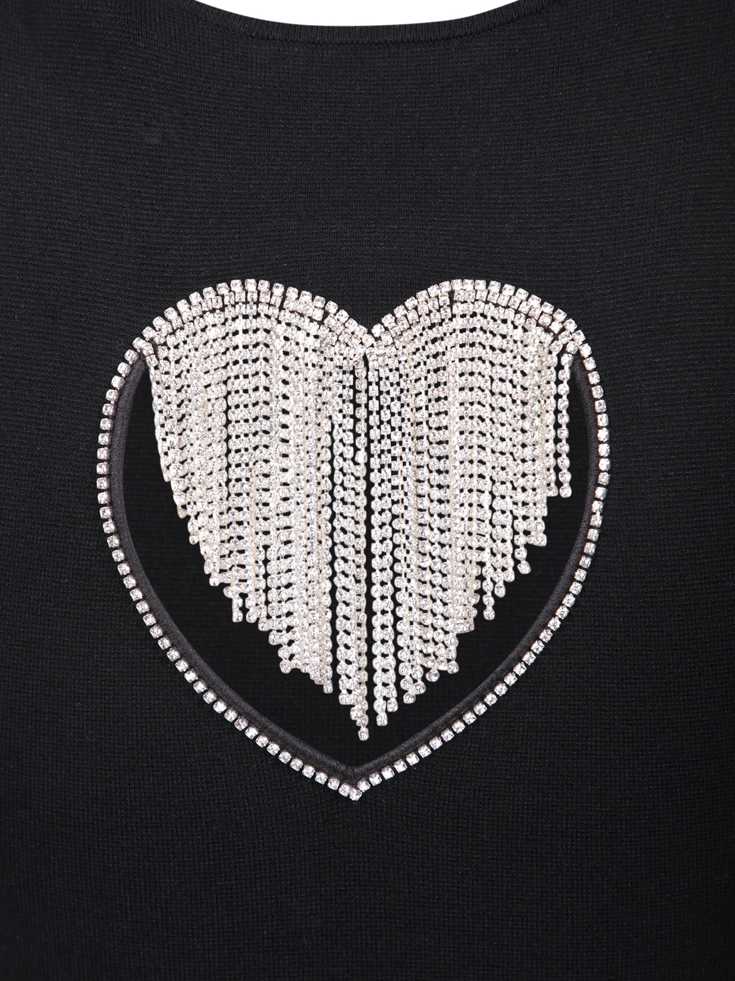 Sleeveless top. Crystal fringe details. Crew neck.