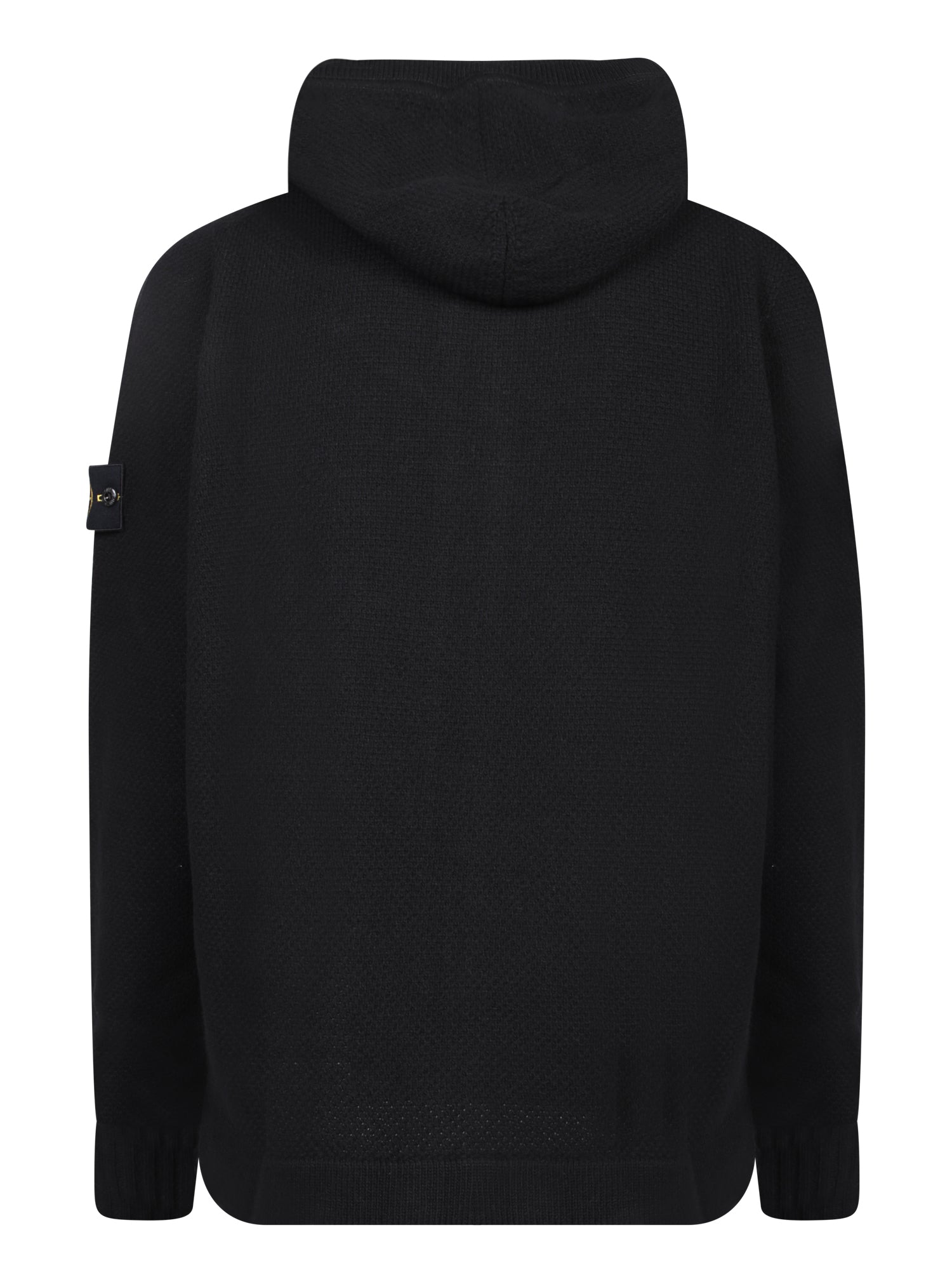 Hooded sweatshirt, front zipper closure, long sleeves, logo detail on the left arm.