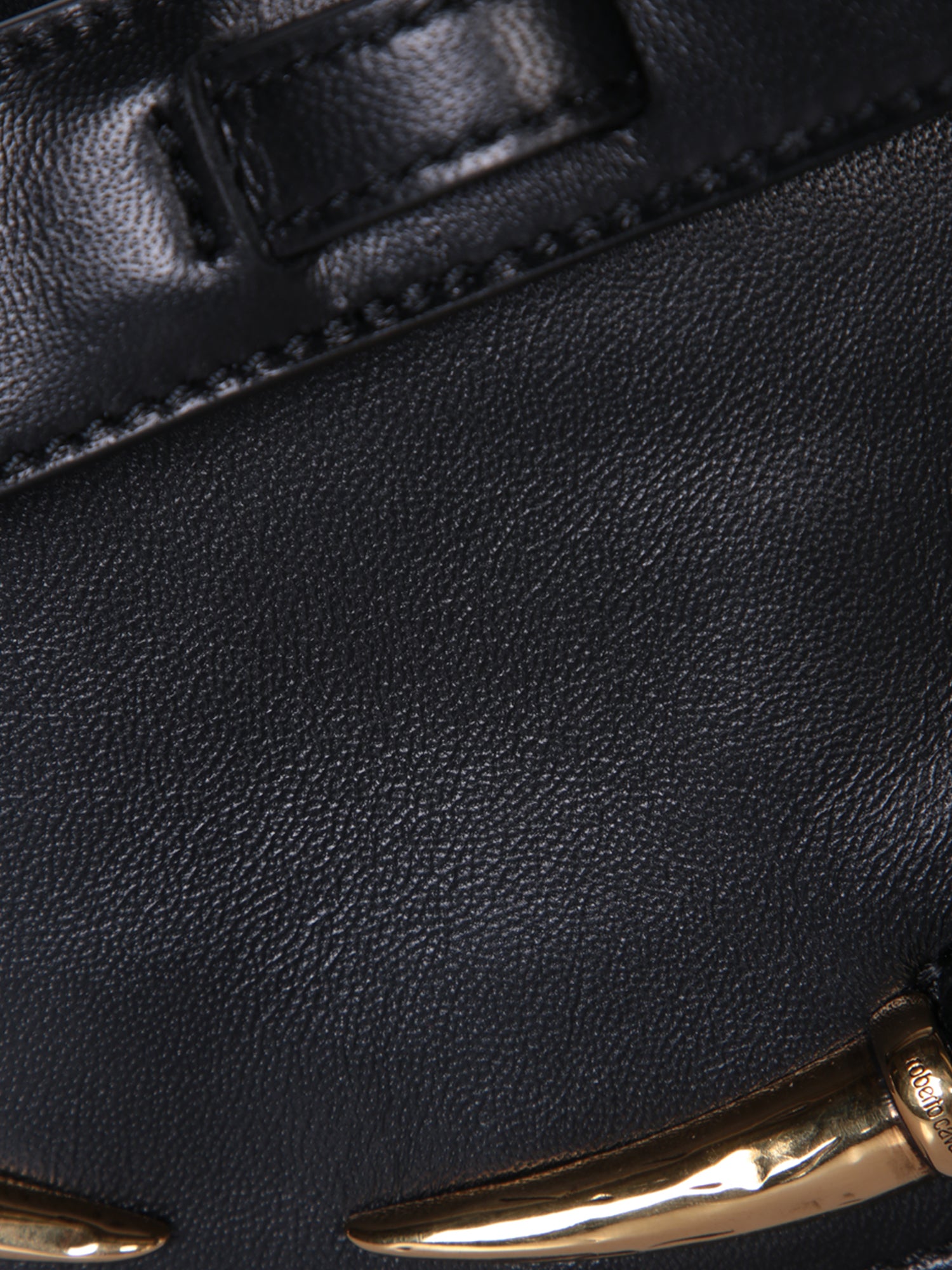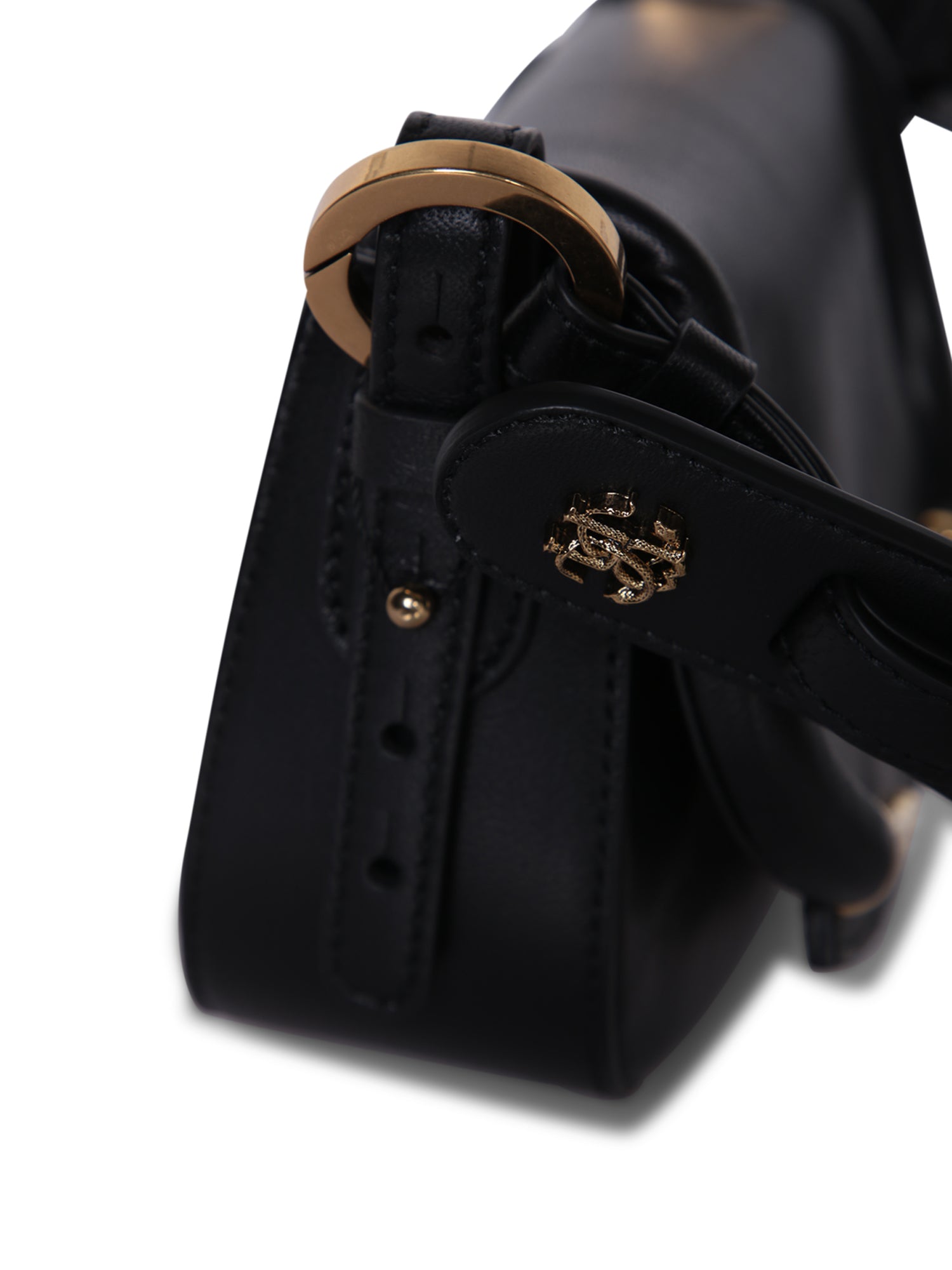 Crafted from high-quality leather. Features an adjustable shoulder strap and golden metal details.