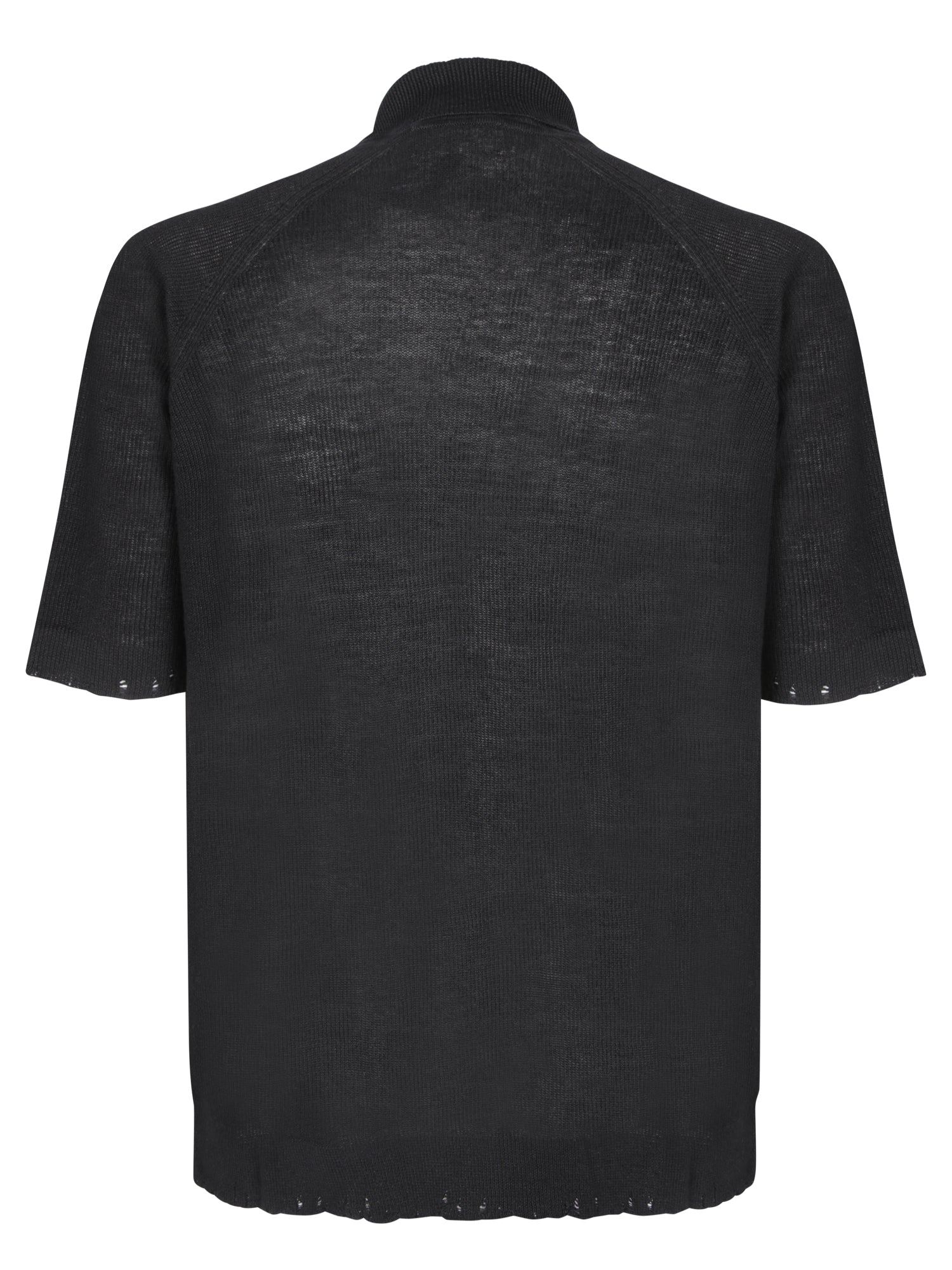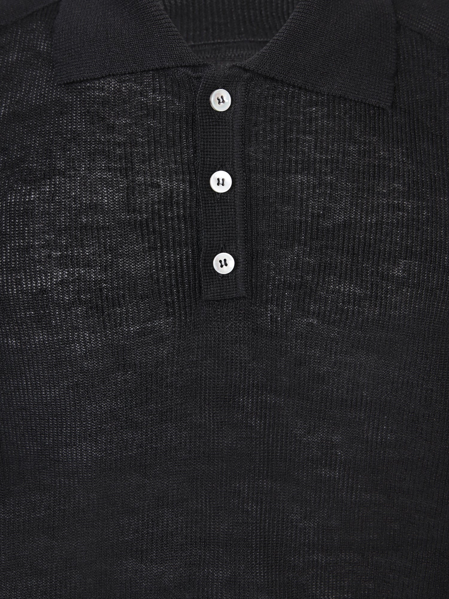 Short-sleeve linen and cotton polo. Classic collar with button closure.
