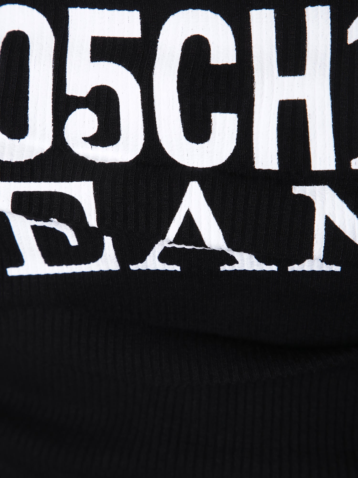 Stretch knit bandeau top. Contrasting Moschino Jeans logo on the front.