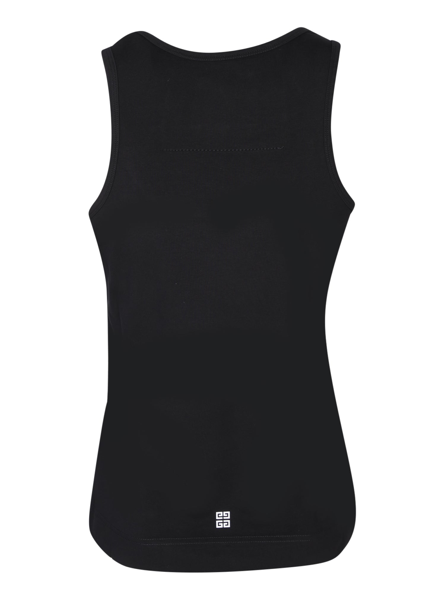 Sleeveless top in stretch fabric. White Givenchy logo on the front. Round neckline.