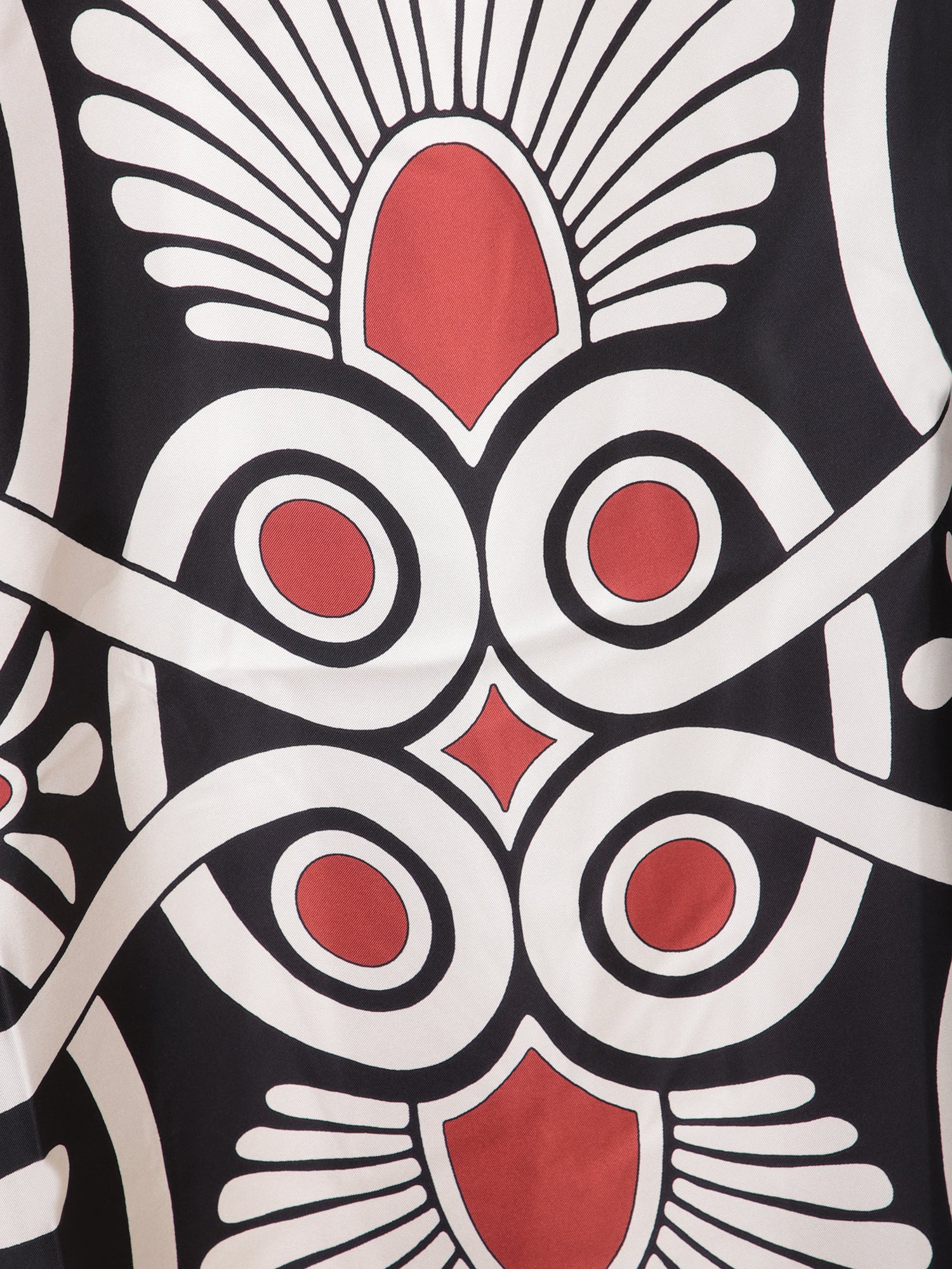 Silk dress with medallion print. Sleeveless trapeze model. Timeless design.
