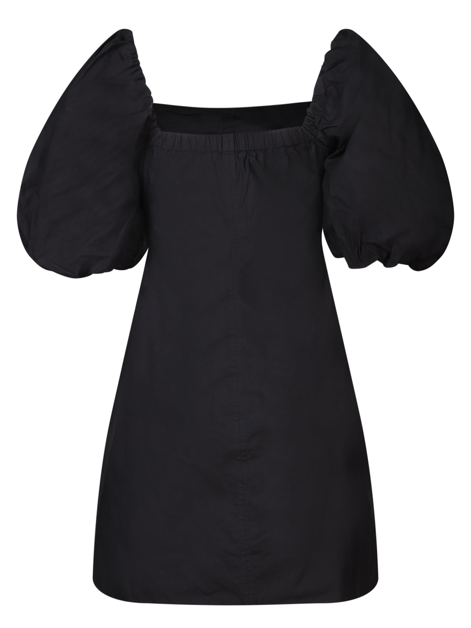 Voluminous puff sleeves. A-line silhouette. Square neckline.