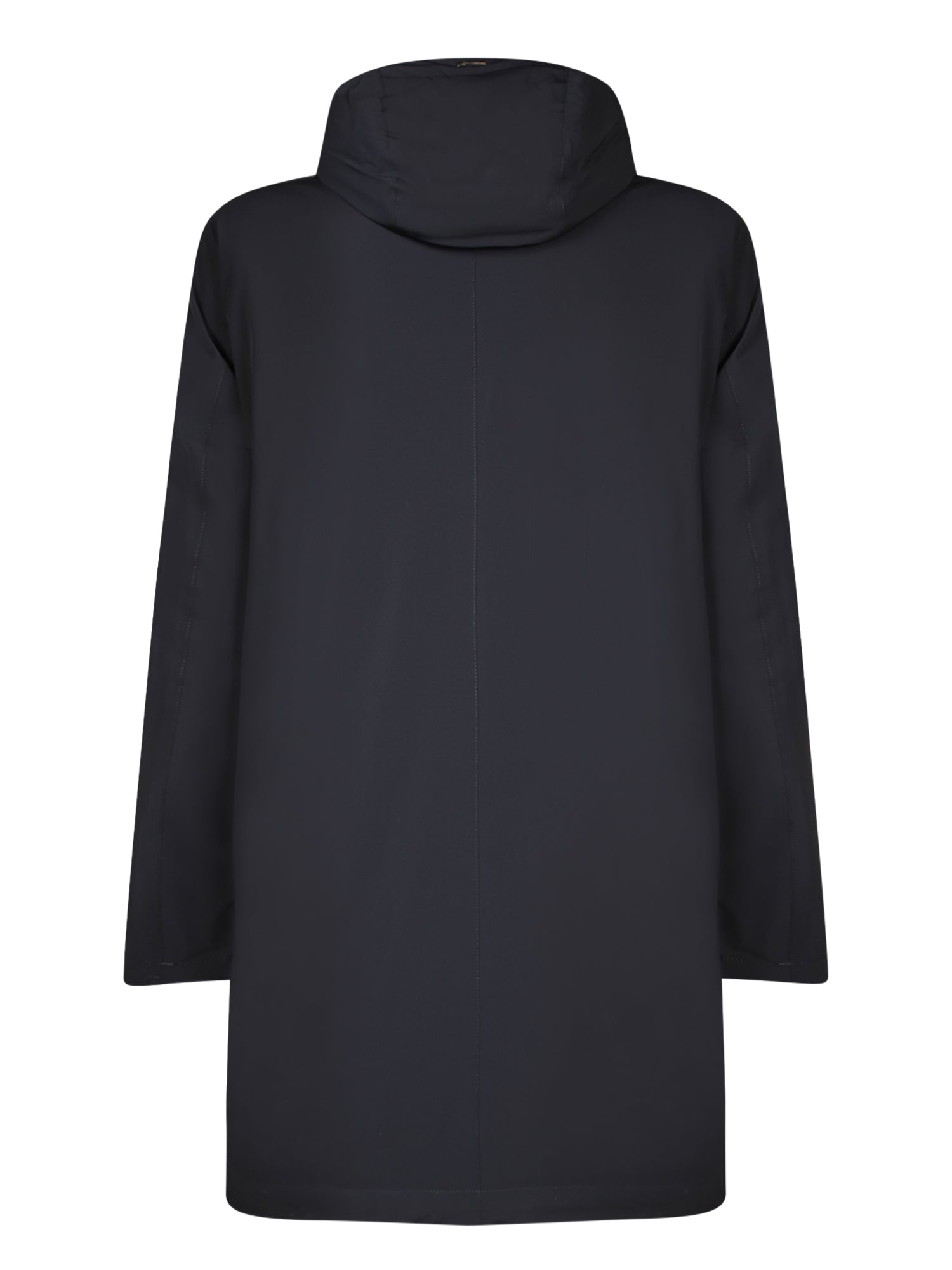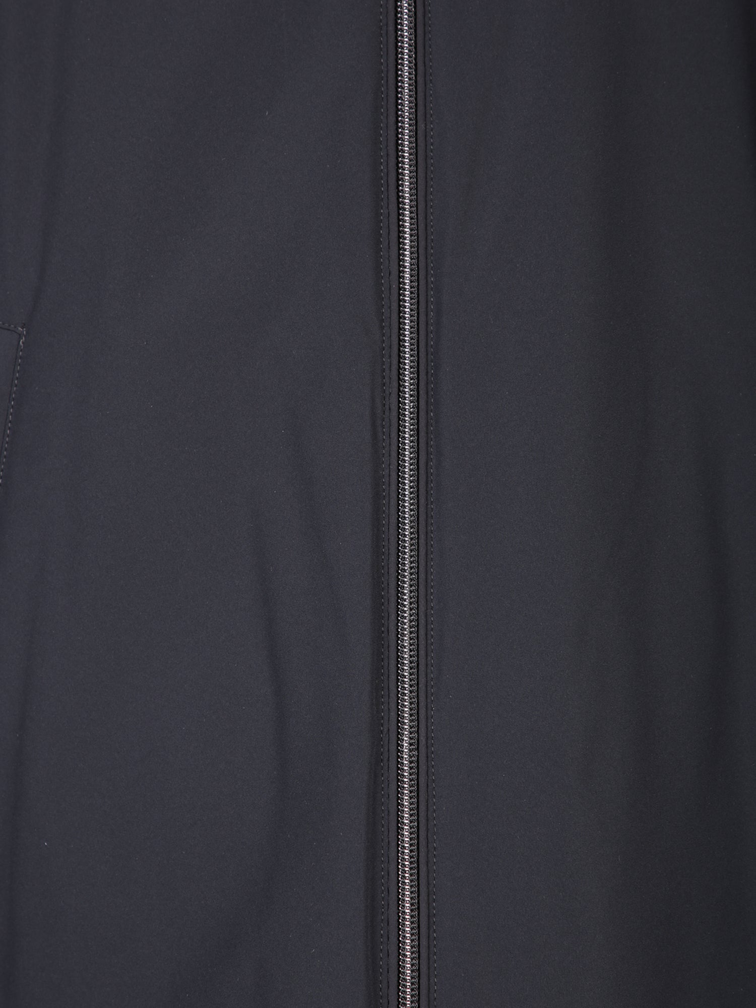 Coat featuring an adjustable hood, front zipper closure, and flap side pockets.