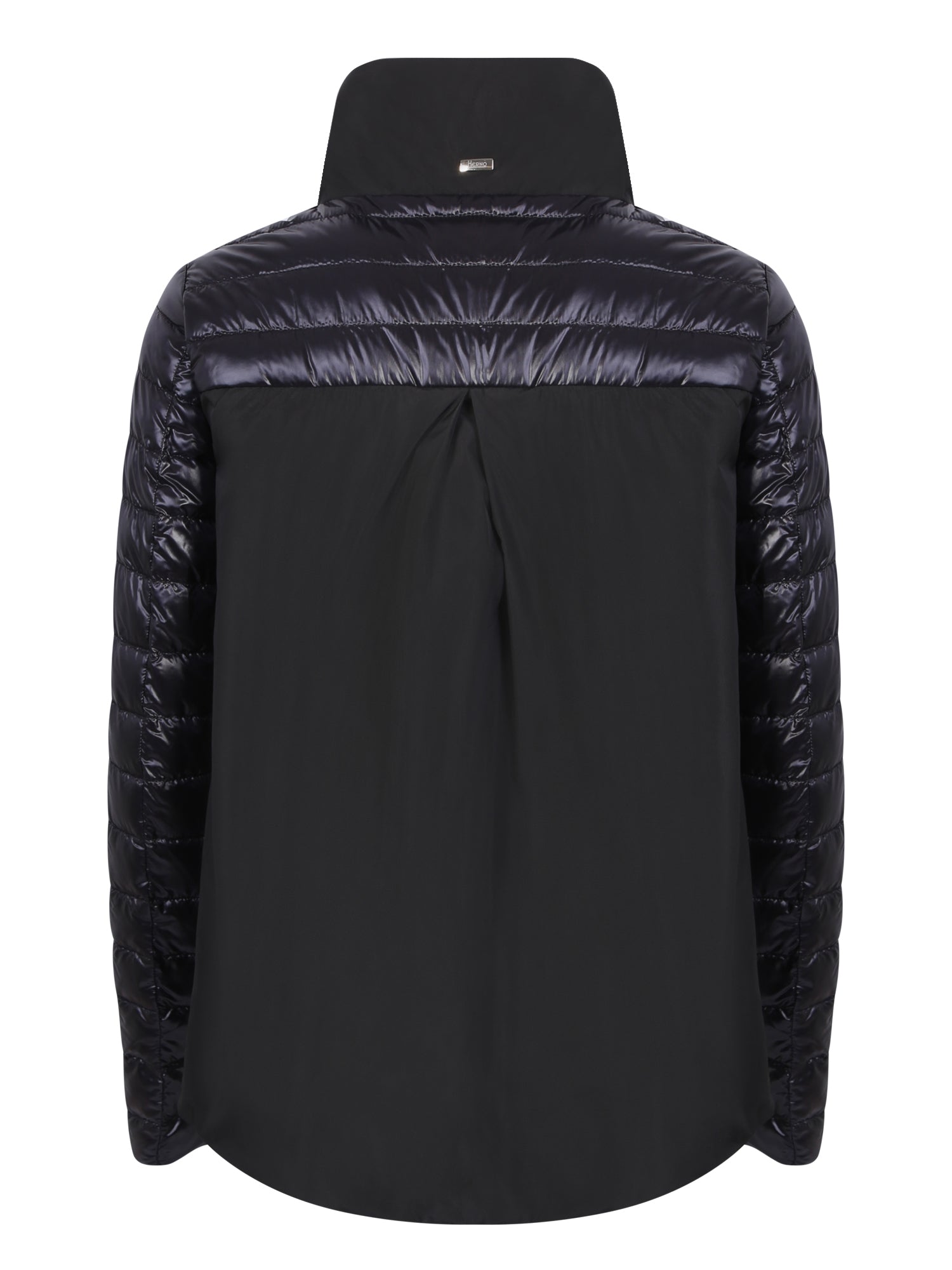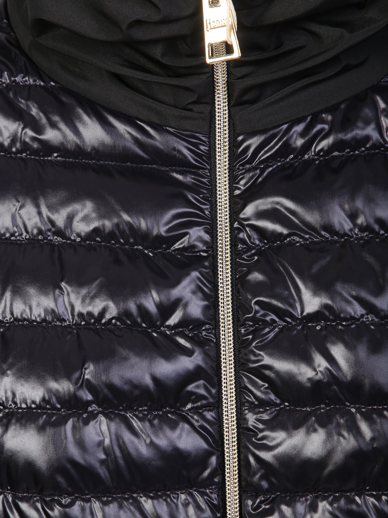 Black jacket from Herno with a tailored silhouette that puts the all-over horizontal padding at the forefront of the design