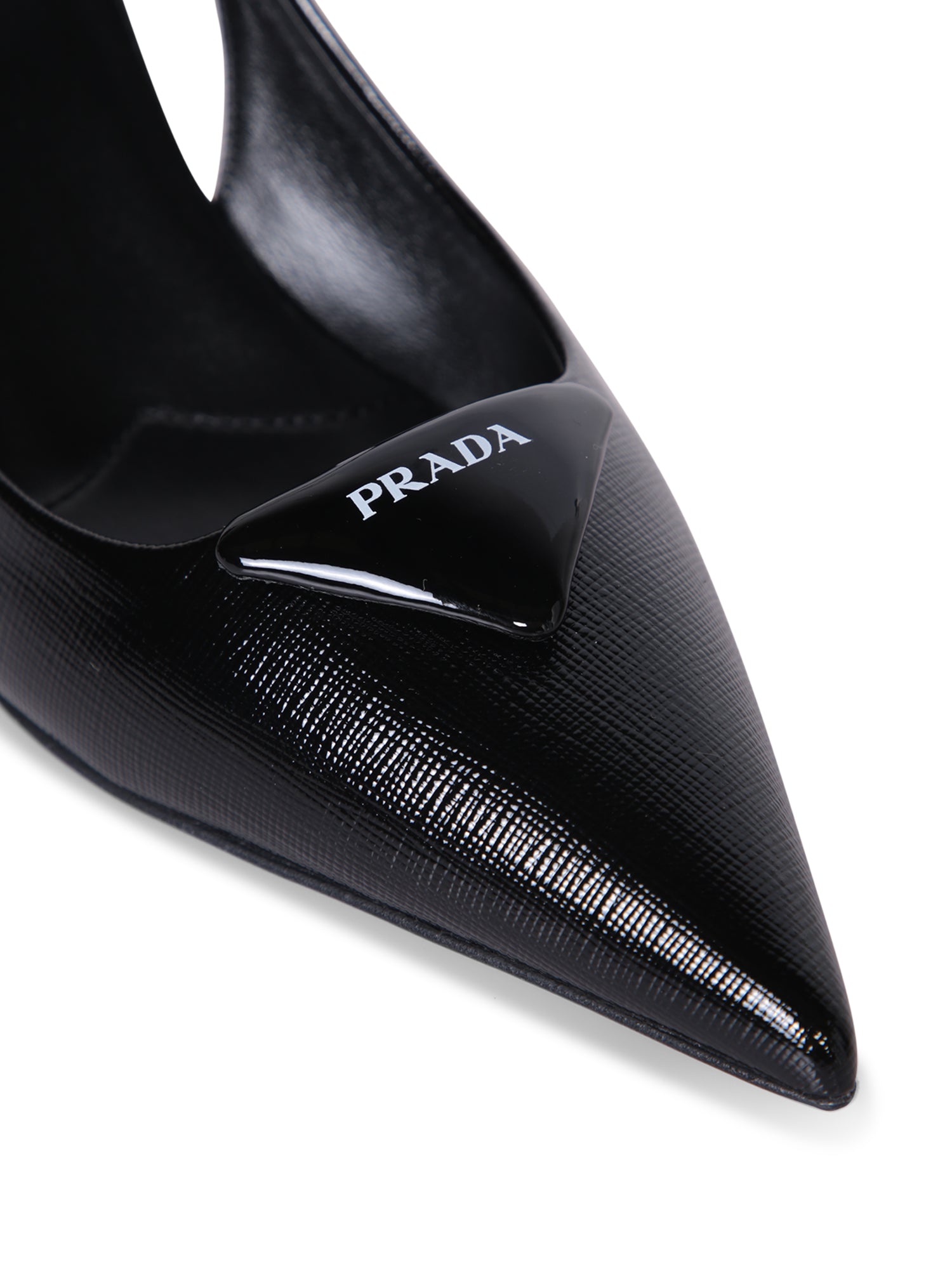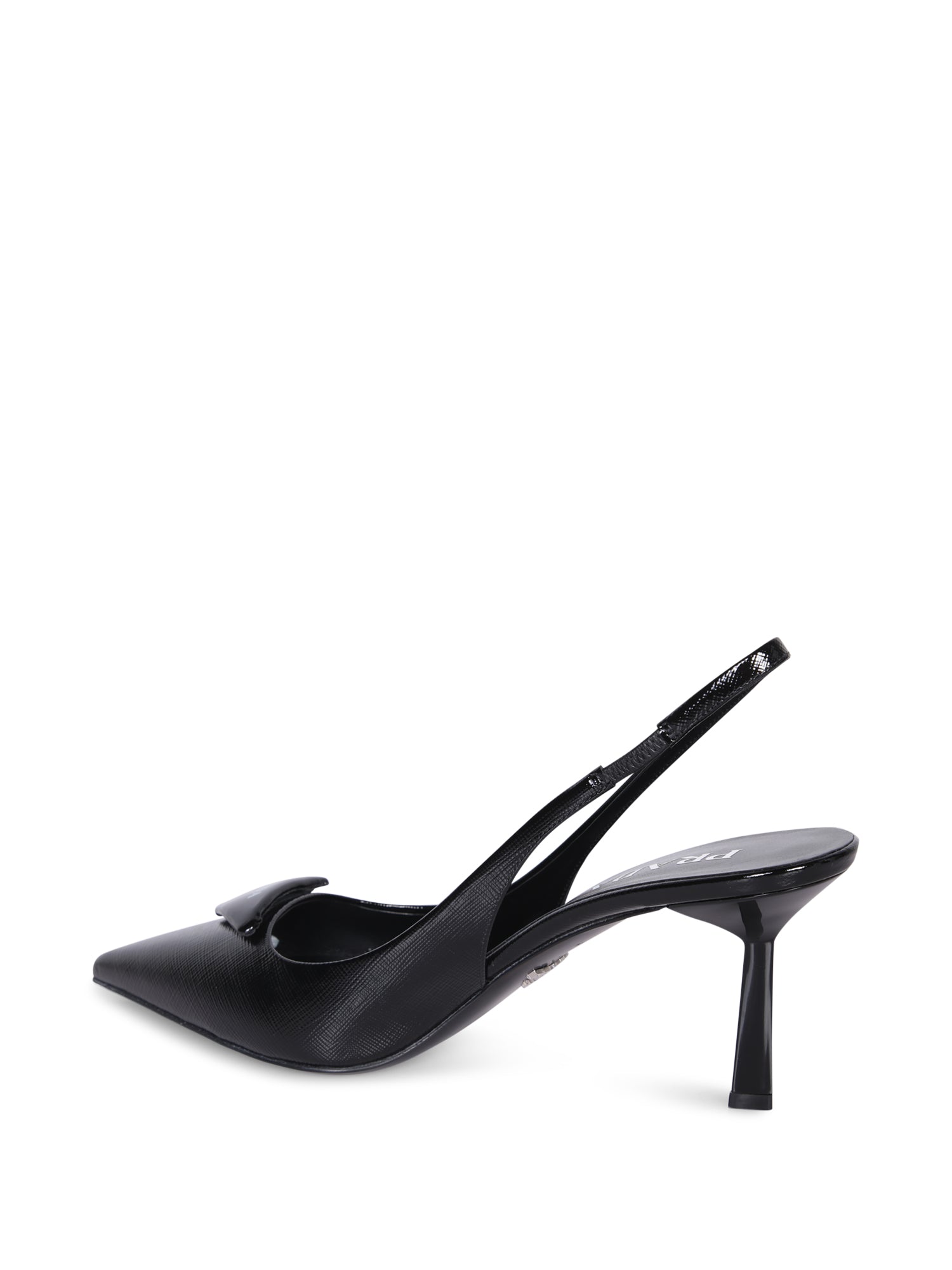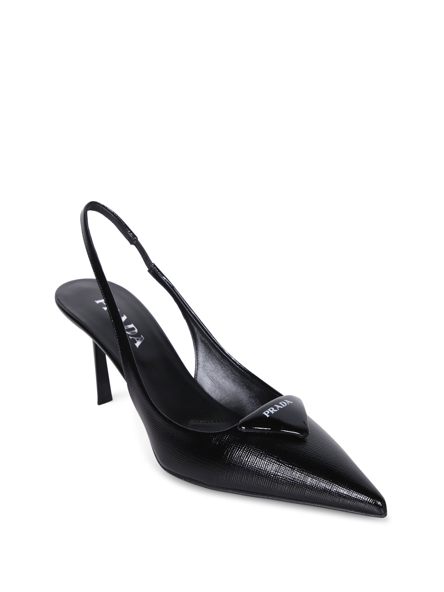 Patent leather slingback. Medium-high heel. Pointed toe.