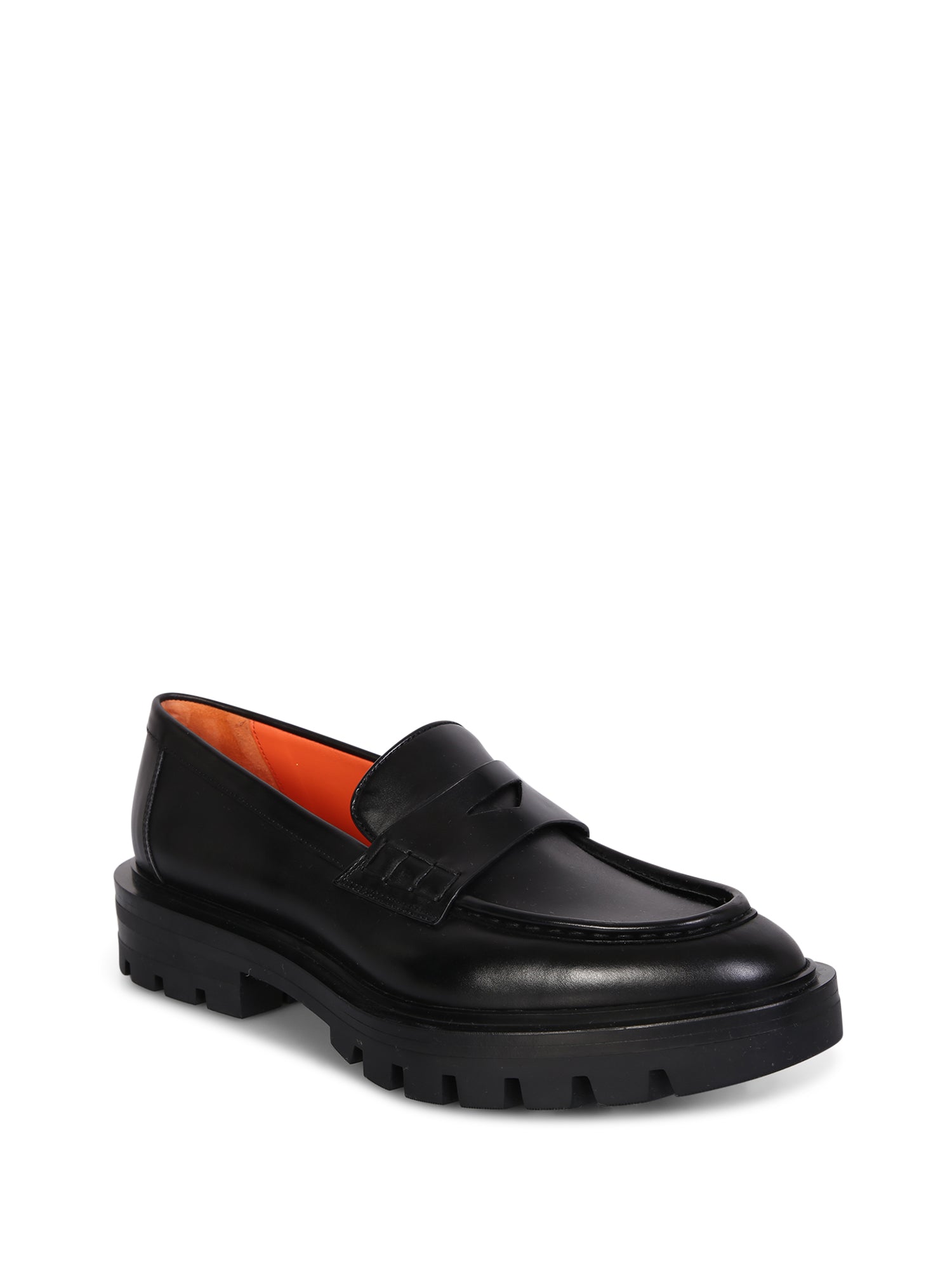 Penny loafer in Santoni leather. Robust design with a feminine touch