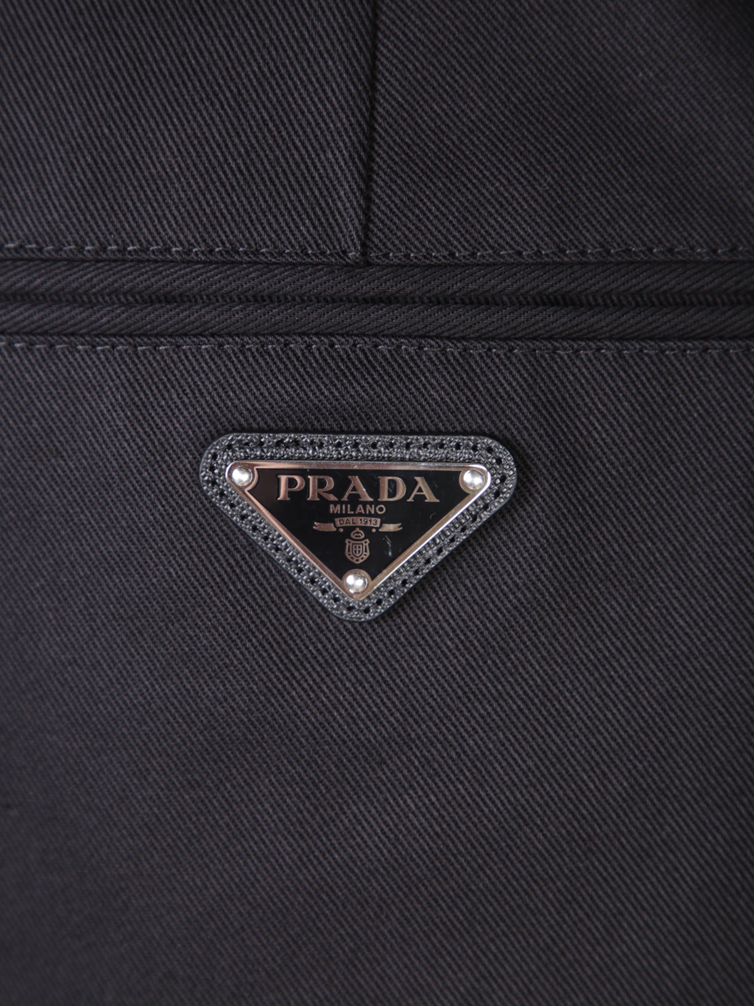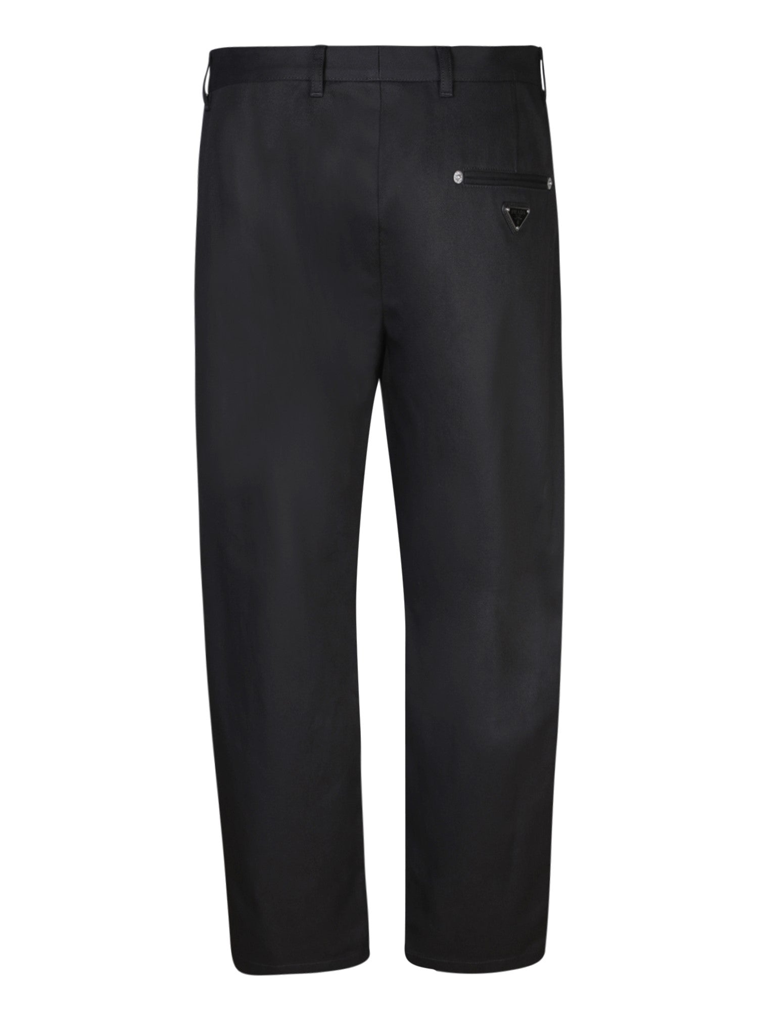 Elegant trousers in smooth black fabric. Side pockets and a back pocket with Prada logo.