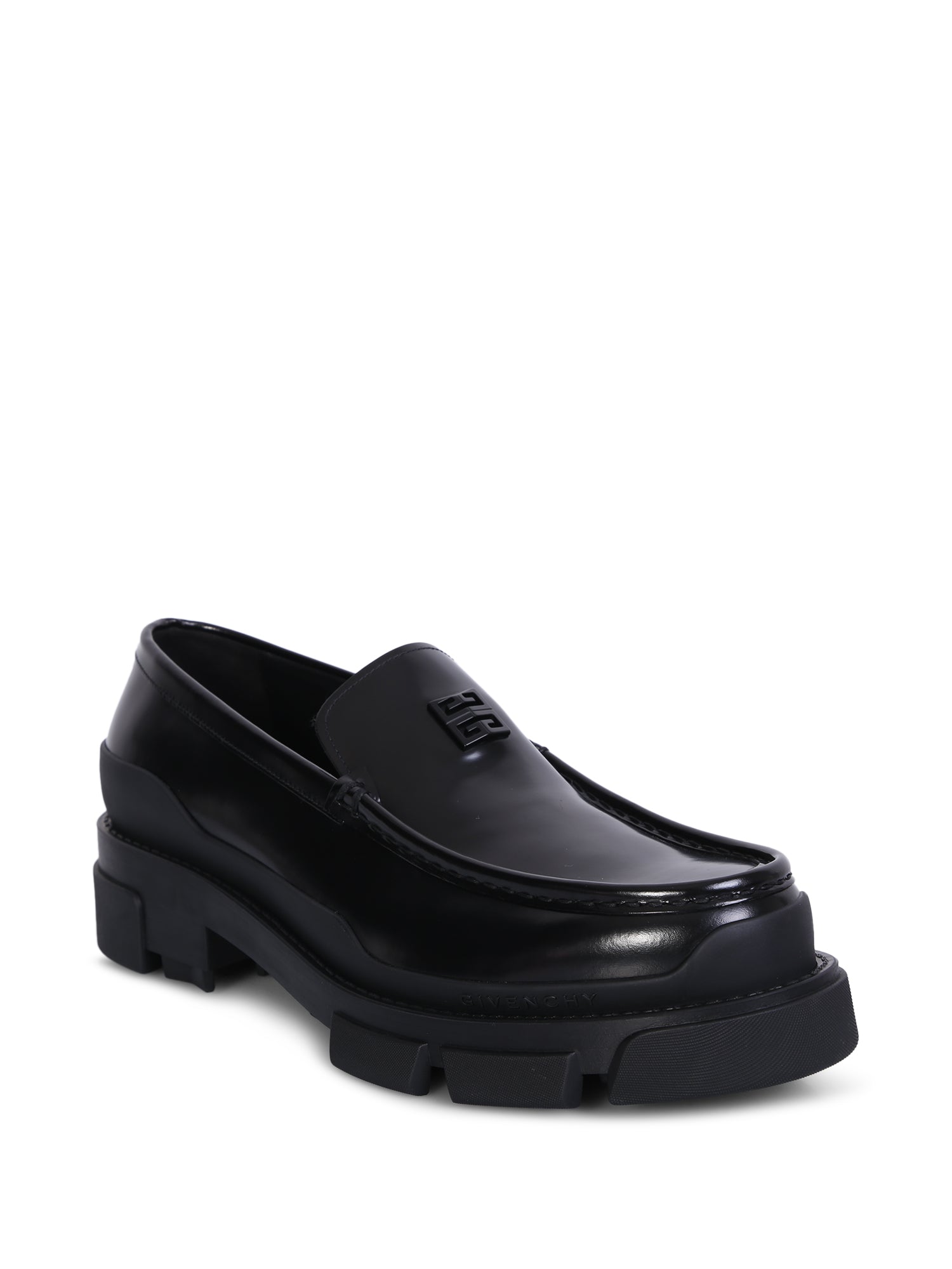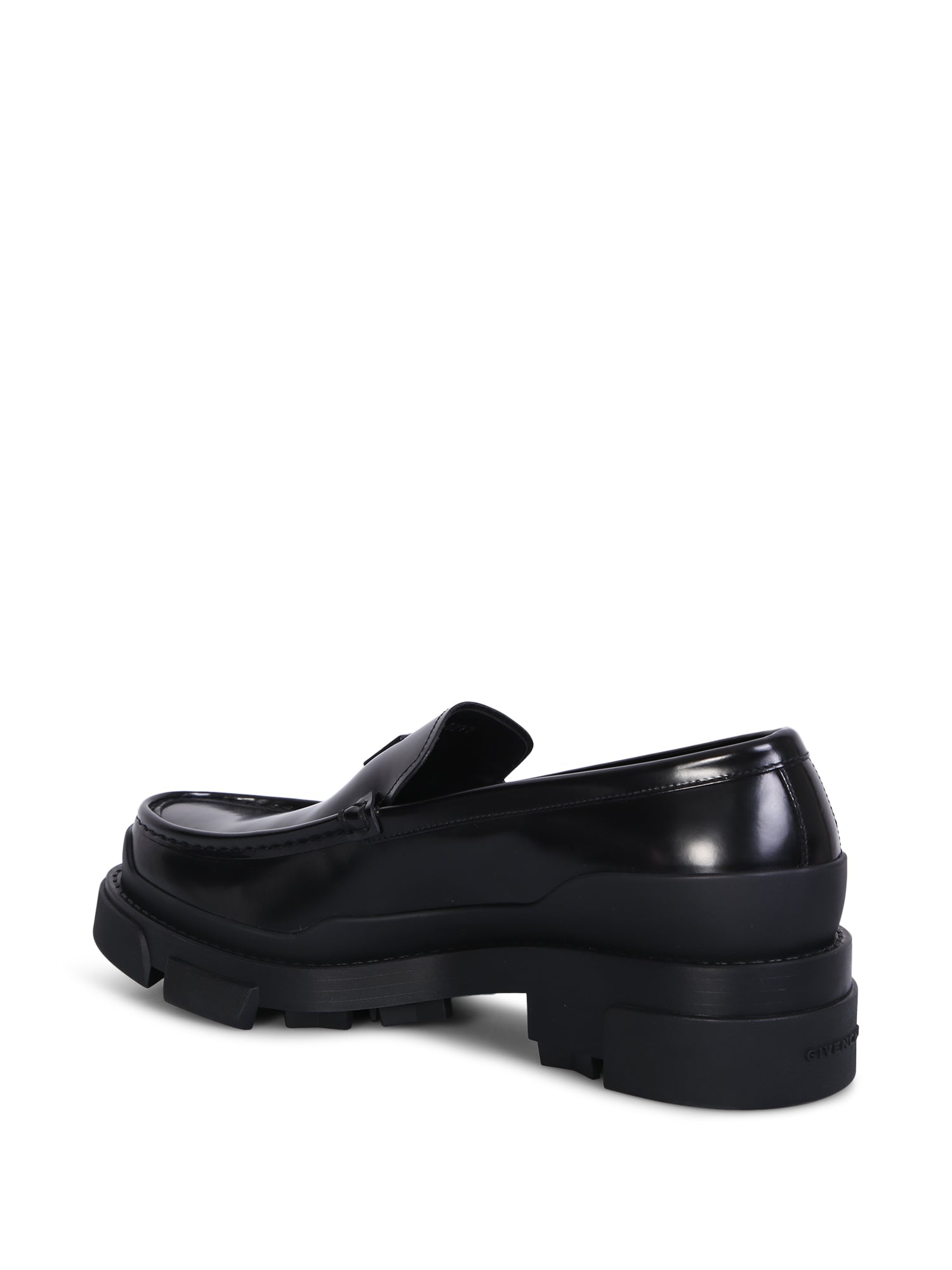 Black leather Terra loafer by Givenchy features a platform sole and a classic, elegant design